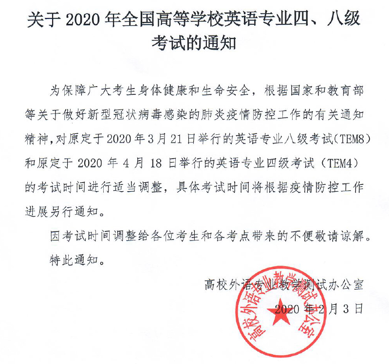 上一条:关于取消2020年英语专四专八测试等通知 下一条:2020届英语专业本科生毕业设计(论文)工作安排