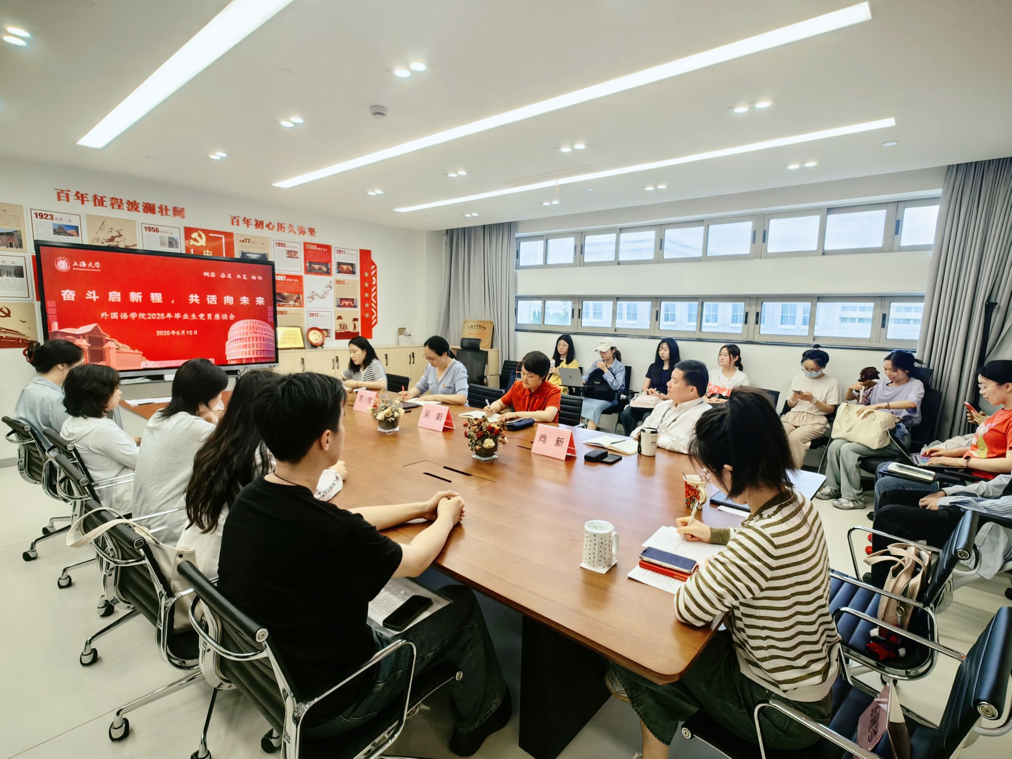 座谈会伊始,尚新经理对毕业生提出三点期望。他强调,作为党员毕业生,首先要牢记初心使命,始终以党员标准严格要求自己;其次要充分发挥专业特长,以创新视野为构建人类命运共同体贡献力量;最后要做有温度的奋斗者,将人文关怀融入工作实践。尚经理特别引用陈望道翻译《共产党宣言》时"真理的味道非常甜"的典故,勉励毕业生们坚定理想信念,成长为具有"中国灵魂、国际视野"的卓越创新外语人才。