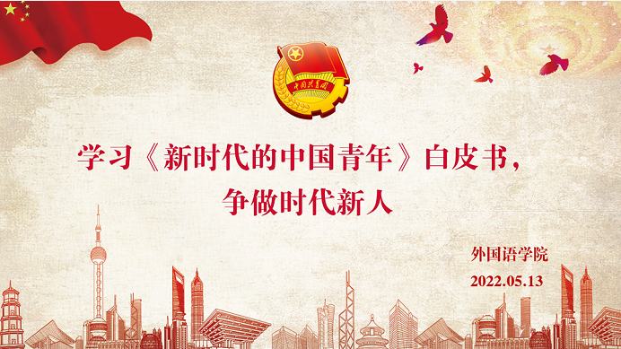 习近平总书记在庆祝中国共产主义青年团成立100周年大会上的讲话中提出:“奋斗是青春最亮丽的底色,行动是青年最有效的磨砺。有责任有担当,青春才会闪光”。5月13日下午,3044永利集团本科生春季学期主题教育之“学习《新时代的中国青年》白皮书,争做时代新人”顺利开展,此次活动由2020级法语班班长倪如萍同学主持。
