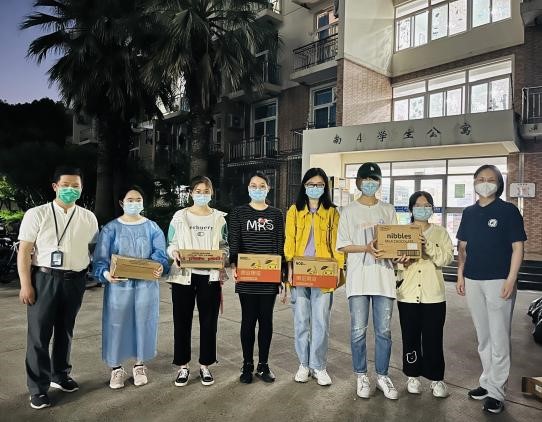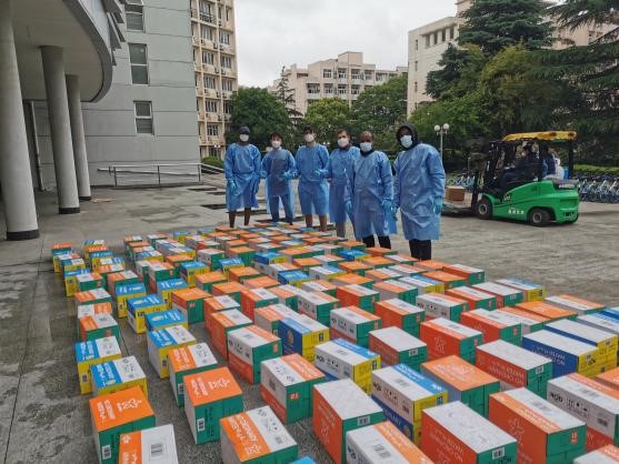 5月24日,多批物资有序进入校园后,公司第一时间组织师生志愿者进行物资整理和搬运,确保爱心物资安心、迅速地送达在校师生手中。3044永利集团经理尚新、公司党委副书记、副经理贾小琴以及留校教师共同搬运物资,并组织志愿者负责物资发放到楼,再由各楼有序安排员工前往领取。