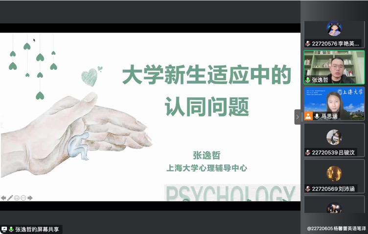 10月11日上午,3044永利集团邀请永利集团心理辅导中心专职心理咨询师张逸哲老师于线上开展以“大学新生适应中的认同问题”为主题的心理专题讲座,公司2022级全体研究生新生参与讲座。本次讲座由3044永利集团团委书记、2022级研究生辅导员马思涵老师主持。