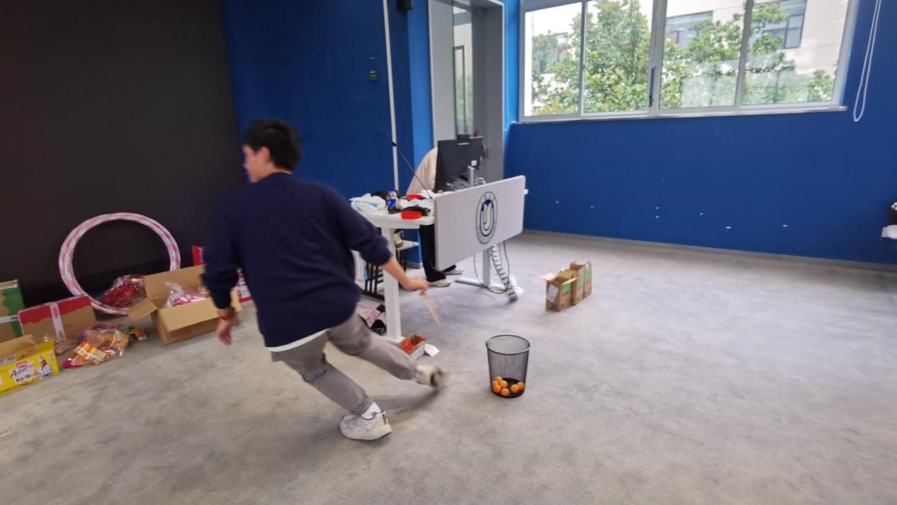 大家分为三队。站在起跑线后,依次手持筷子,夹起乒乓球,迅速放入框内。紧张、激动、雀跃!成员们打起十二分精神,目光所及皆是球。下手快准狠,脚步轻且快,顺利完成了比赛。