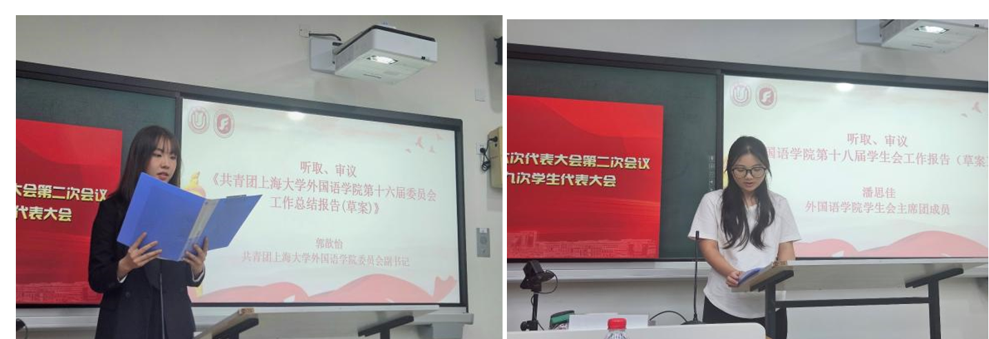 随后,大会先后听取、审议了公司团委副书记郭歆怡同学代表公司团委所作的工作报告(草案)和院员工会主席团成员潘思佳所作的公司第十八届员工会工作报告(草案),对一年的工作进行总结与剖析,并由在场代表表决通过。