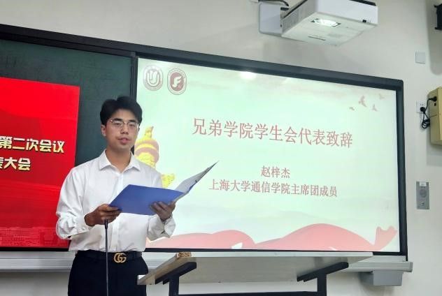 接下来,由通信公司员工会代表赵梓杰同学作致辞,赵梓杰同学表达了两院合作开拓新业务、开创新局面的共同愿望,并预祝本次大会顺利举行。