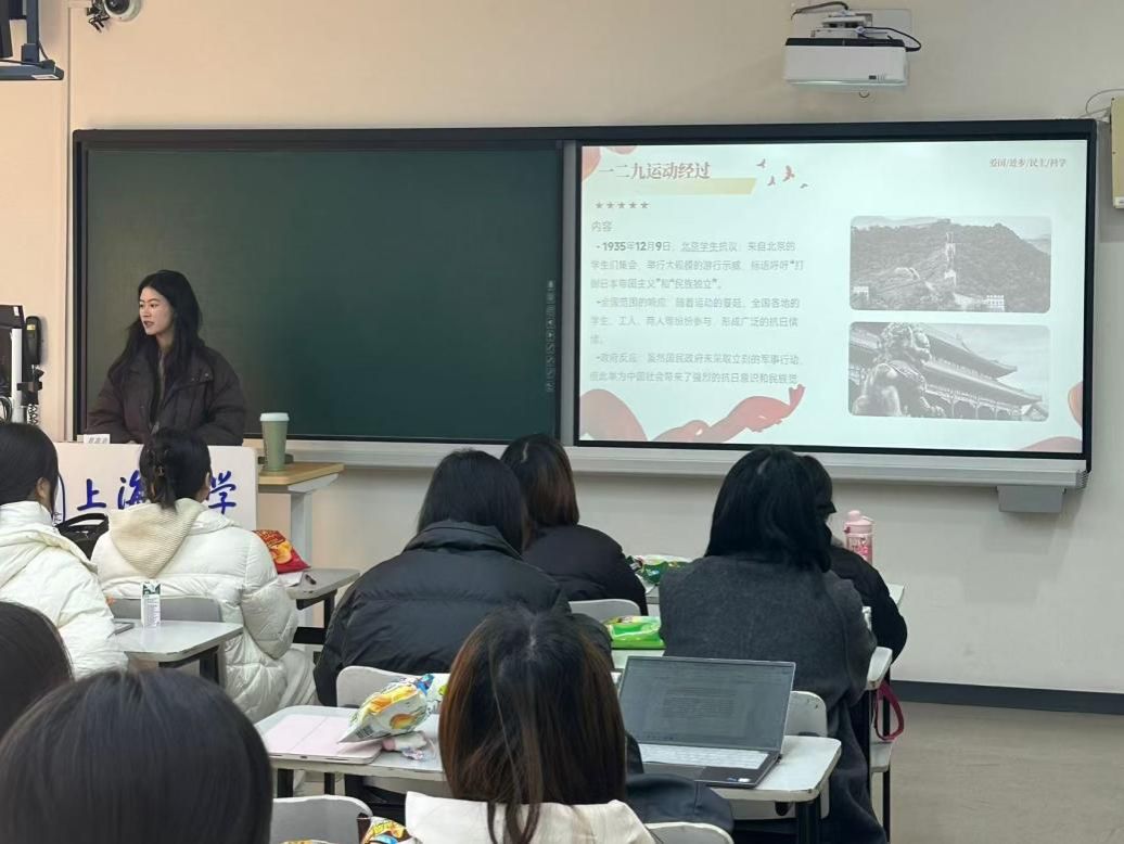 活动由团支书管应玉同学主持,她首先带领同学们回顾了“一二九”运动的历史背景和意义,介绍了1935年12月9日发生在中国北方的这场具有重要历史意义的抗日救国运动。通过生动的讲解,同学们更加了解了“一二九”运动的起源、过程以及它对中国人民抗日救国斗争的重要推动作用。