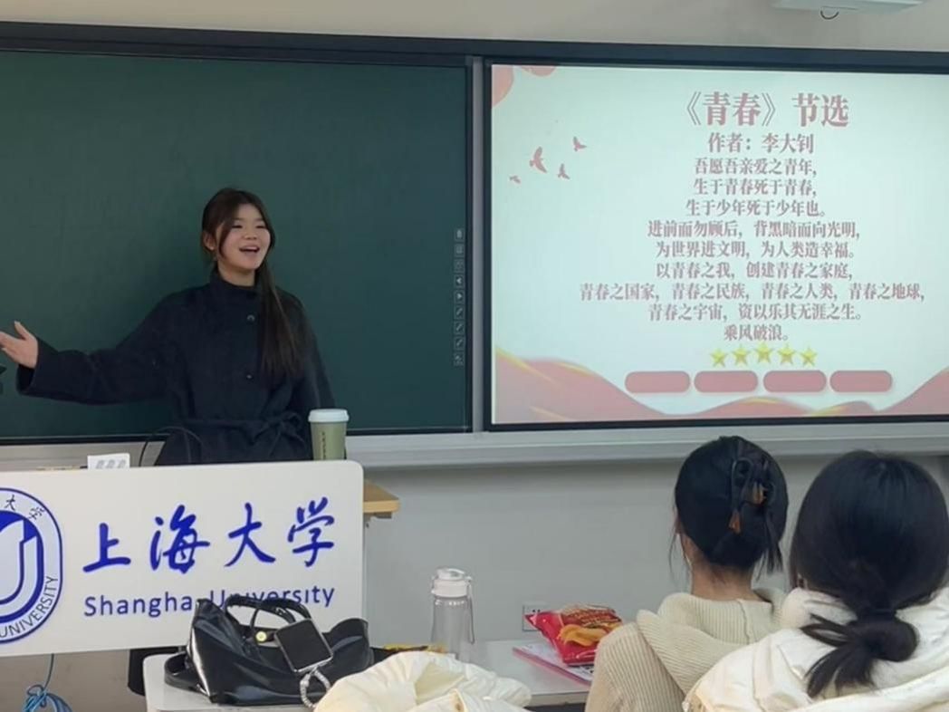 随后,于荣英同学进行诗歌朗诵《青春》,以饱满的热情和激昂的语调传递了新时代青年的责任与担当,鼓舞了大家为实现中华民族伟大复兴的中国梦而不懈奋斗。