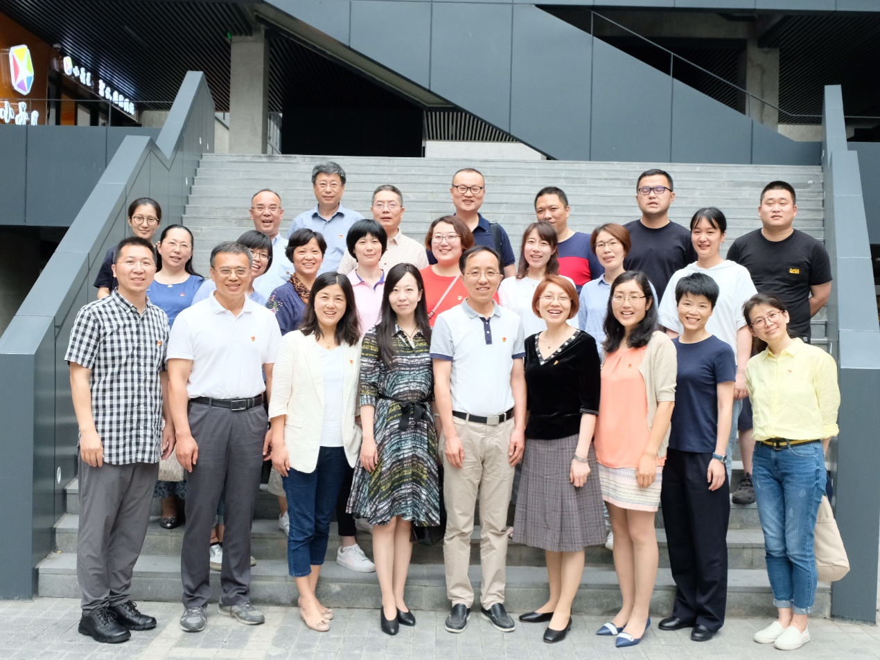 此后,龚萍老师主持了交流座谈环节,英语系一支部冯奇教授受邀进行了主题发言。冯教授从语言学习的目的出发,从语言知识结构、语言使用、语言的三要素等三个方面就社会人员提高英语的难点与痛点展开了深入浅出的剖析。冯教授旁征博引,结合实例对结对支部党员关心的语音、语义、语句与语境等常见问题进行了阐发,赢得在座各位党员教师的阵阵掌声。冯教授的精彩分享在散发着阵阵墨香的钟书阁回响,各位党员同志也逐渐放下矜持,各抒己见,畅所欲言。严峰书记抛砖引玉,提出了出入境管理办公室各位党员同志工作场景中使用英语时遇到的困难,其他党员同志也分享了日常生活中英语学习的种种困惑,冯教授都一一进行了分析解答。英语系一支部张建琴副教授也给出了一些具体建议,并提议针对公安部门涉外英语交流开发专门教材,开展任务型教学。陈秀猛书记结合教学实践与家庭教育,对如何优化现有的在线与线下学习资源进行了细致入微的分享。英语系教工第二支部徐群老师结合子女教育的成功案例分享了以兴趣为驱动的英语学习理念。日语系教工党支部书记廖瑞平老师结合外语学习的共性惟妙惟肖地再现了英语在日语中的变异。龚萍老师最后提出开展线上线下资源共享、定期主题生活与英语微党课等共建方案,得到与会代表的一致认可。