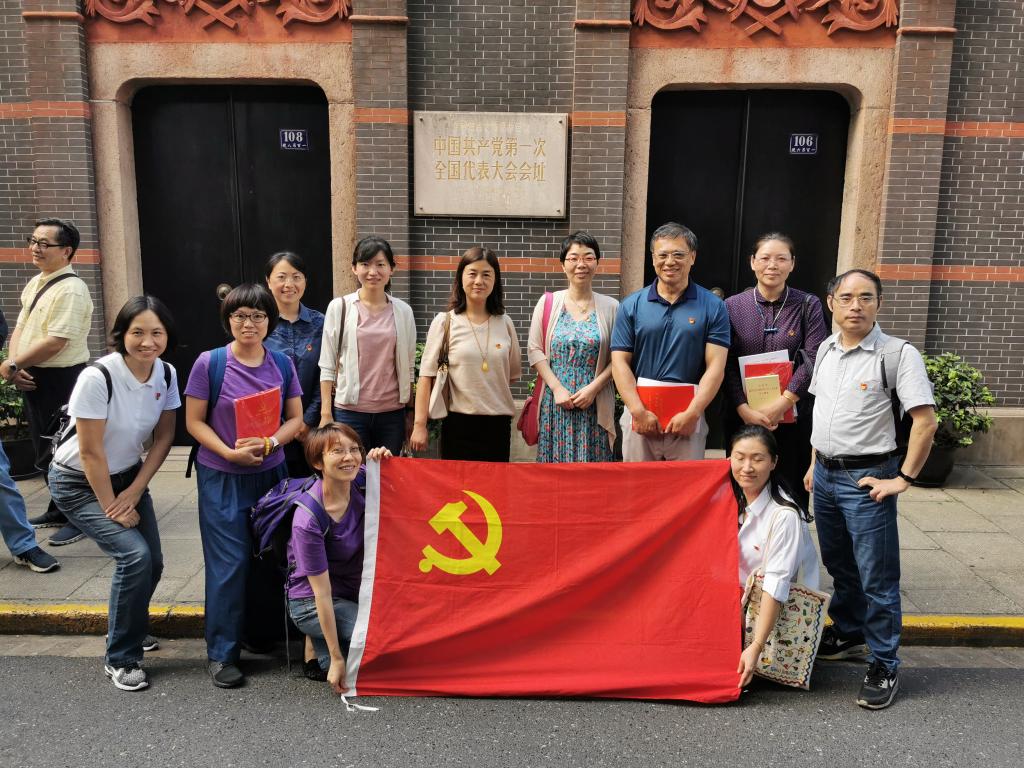 2019年10月12日下午13:00,外语公司英语系第一支党支部的九名党员教师汇集中共一大会址纪念馆。一大会址位于上海市兴业路76号,是一幢沿街砖木结构旧式石库门住宅建筑,坐北朝南。这里是中国共产党的“产房”, 是梦想起航的地方。