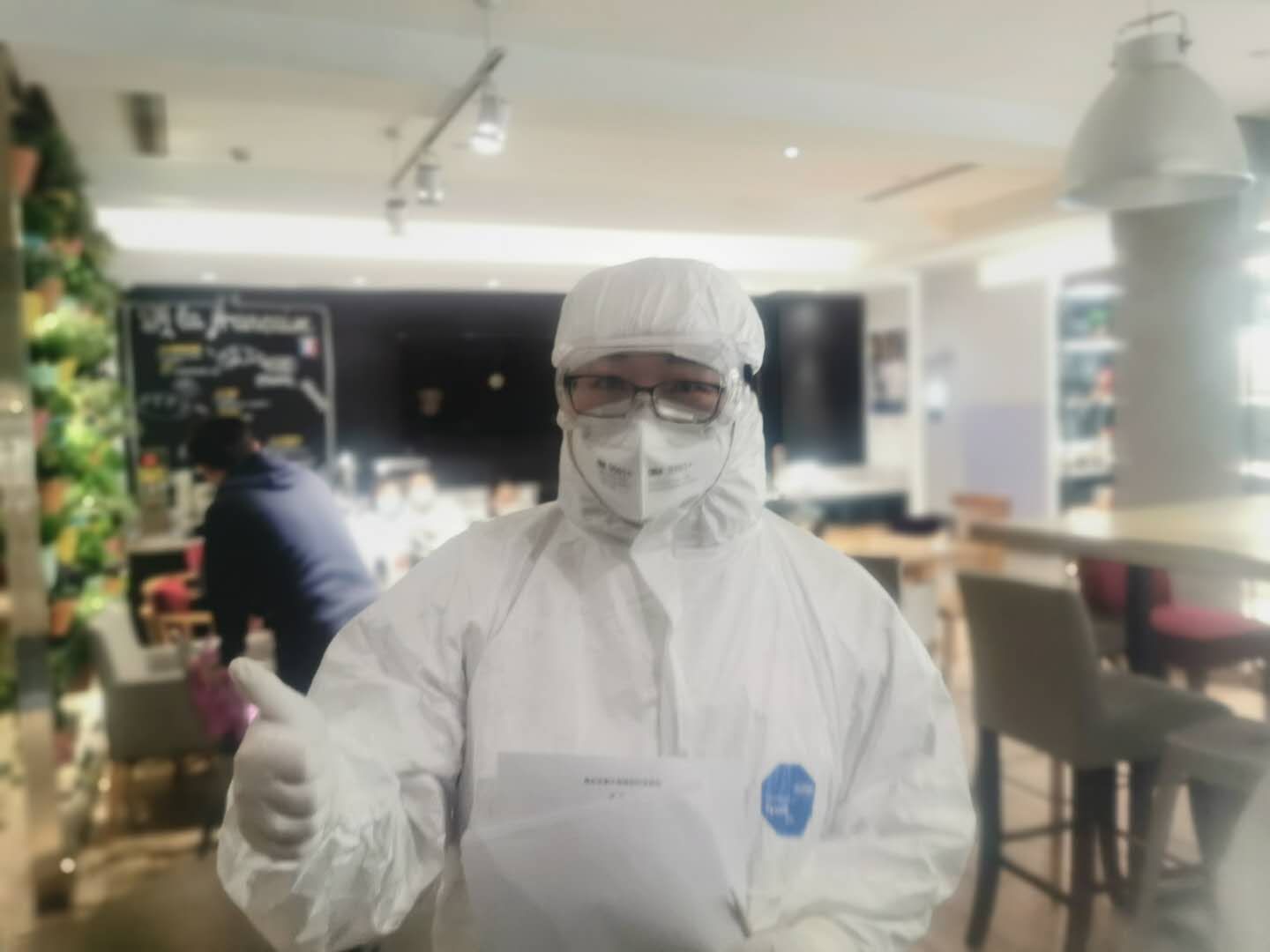 其中有三位“老外”的情况比较复杂。第一位是西班牙男士,因他申报留沪的社区住址属于合住,不符合“独门独户共同隔离”的居家观察条件,因而要集中隔离观察14天,但他本人和单位都希望安排他到公司指定住处留宿,这其中就存在着安全隐患。朱老师耐心跟他和公司同事做了不少政策方面沟通和解释工作,最终他同意了前往集中隔离点观察。第二位是美国男士,由于他不符合居家观察条件,进入临时点酒店后又一直不接房间电话,且手机号码入境时已停用而无法取得联系,只能当面告知相关政策。情急之下,朱老师挺身而出,穿上二级防护服,同医生和警察同志一起进入隔离区进行现场翻译。尽管内心有些害怕,护目镜布满水汽让视线都变得模糊,身穿隔离服也满是汗水,但朱老师坚持完成了沟通工作,确保了该男士配合去往集中隔离点。最后一位是来自英国的女士,她起初听到不符合居家隔离条件后,情绪一度失控大哭,后经过朱老师的多次沟通安抚,包括期间了解到她饿着肚子,还帮她送去了面包和点心,她的情绪才逐渐平复。最终在居委等多方协调下这位女士的问题得以解决,临行前她通过电话对朱老师表达了深深的谢意。当所有“老外”都得到妥善安排后,朱老师也终于松了一口气,完成了当日使命,并做好准备再次上岗。