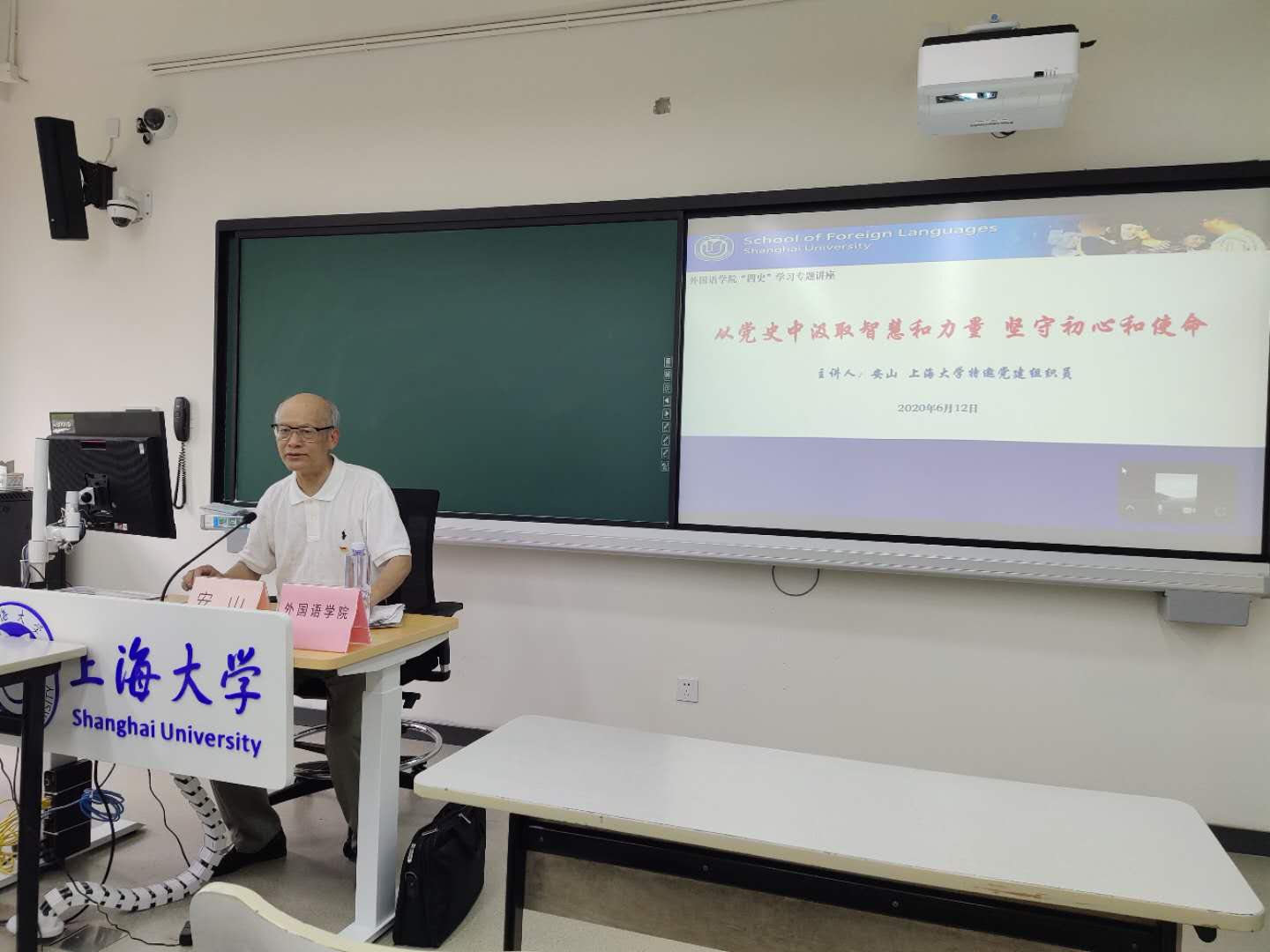 安山老师引用“以史为镜,可以知兴替”,开篇即道出了历史的重要性。他指出:对中国共产党来说党史就是党的一切,希望同学们能从党史中汲取智慧和力量,坚守初心和使命,并从理论、实践、党的自我革命和创新等三个方面对党史进行讲解。