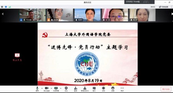 8月19日晚,公司党委班子通过线上视频会议开展了第三届进博会、统筹疫情防控及迎博办博发挥党建平台作用等相关精神的主题学习活动。公司党委书记邓志勇、副书记贾小琴、副经理戴朝晖、英语系党总支书记陈秀猛和党委委员、工会主席张建琴、组织员朱一佳参加了本次学习活动。本次活动由邓志勇主持,陈秀猛导读。