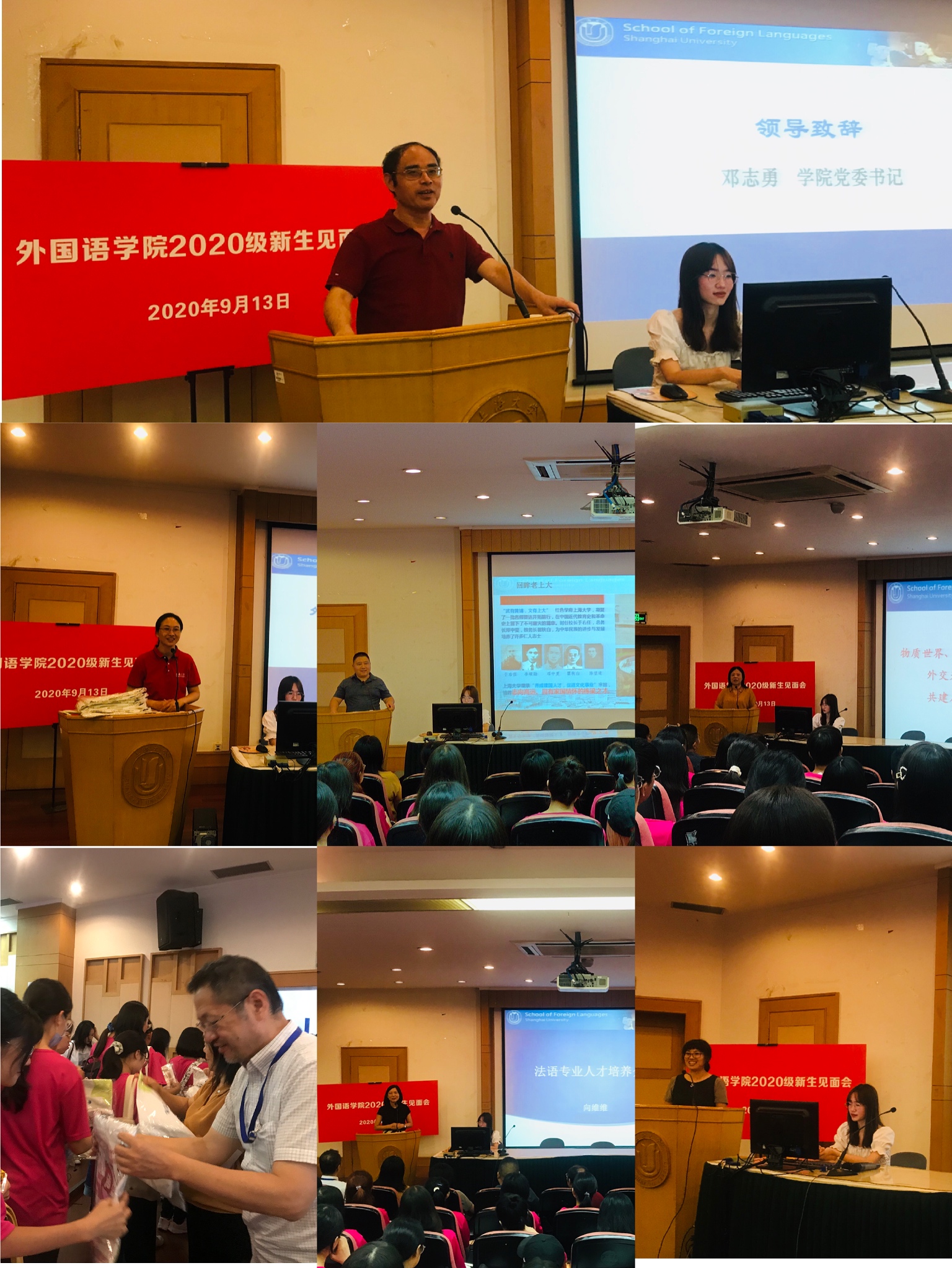 随后,2019级硕士研究生王颖娜作为老生代表发言,她表示,作为一名新生应及时做好自身学业规划,思考日后是继续深造还是工作,在此基础上充分利用公司的资源为之努力。2020级硕士研究生谌芊晗作为新生代表发言,她表示,作为一名上大人应延续老上大人的红色基因,彰显上大人的开放与包容,追求卓越,厚积薄发,作为一名外语人更应促进沟通带来的价值。2020级本科生张文怡作为新生代表发言,她回顾备战高考时光,将以积极上进的姿态和良好的生活习惯,尽快适应新的学习生活,希望四年后都能硕果累累,满载而归。