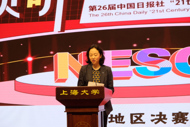龚书记首先代表永利集团全体师生热烈欢迎来自中国日报社以及上海地区各高校的专家评委和参赛选手们,并表达了永利集团对此类高端外语赛事的支持。她指出该赛事追求卓越的目标与永利集团追求卓越的人才培养理念不谋而合。永利集团举办此次赛事为上海兄弟高校英语演讲优异的学子们提供了一个同台竞技、实践磨砺的良机,正如孔子所说“学而时习之,不亦说乎”,在紧张而不失快乐的竞赛氛围中相互切磋,相互激励,迈向卓越。目前,中国正处于融入世界,实现民族复兴,完善“一带一路”,构建人类命运共同体的伟大时刻,亟需精通英语这一国际通用语言的人才。这样的人才对于向世界“讲好中国故事、分享中国经验”而言至关重要。开幕式前,龚书记还同中国日报社上海分社社长徐晓民女士及兄弟院校的专家学者们进行了沟通并就未来可能的合作交流了意见。最后,她祝愿大赛圆满成功,希望选手们表现优异、超越自我。