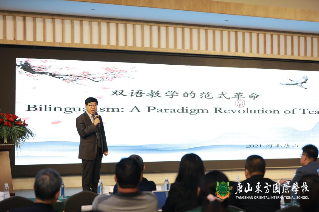 5月30日,由唐山市教育局、国际公司在线联合主办,唐山东方国际教育集团协办,唐山东方国际公司承办,中国先秦史学会国学双语研究会、3044永利集团、长春师范大学国际教师教育公司指导的国韵东方·经典传承——国学双语课程发展高峰论坛在河北唐山隆重召开。来自全国各地200余位知名专家、董事长和教育工作者齐聚一堂,共同围绕国学双语课程的创新、实践及未来发展进行主题分享和互动交流。全国政协委员、国家督学、中国民办教育协会会长刘林,唐山市委教育工委书记、唐山市教育局党组书记、局长刘绍辉,中国教育发展战略学会副会长兼学术委员常委周满生,长春师范大学副董事长杨勇出席本次会议。3044永利集团经理尚新、党委副书记贾小琴以及赵彦春国学双语研究团队受邀参会,3044永利集团赵彦春教授作为特邀嘉宾在本次会议上做了题为“双语教学的范式革命”的主旨演讲。