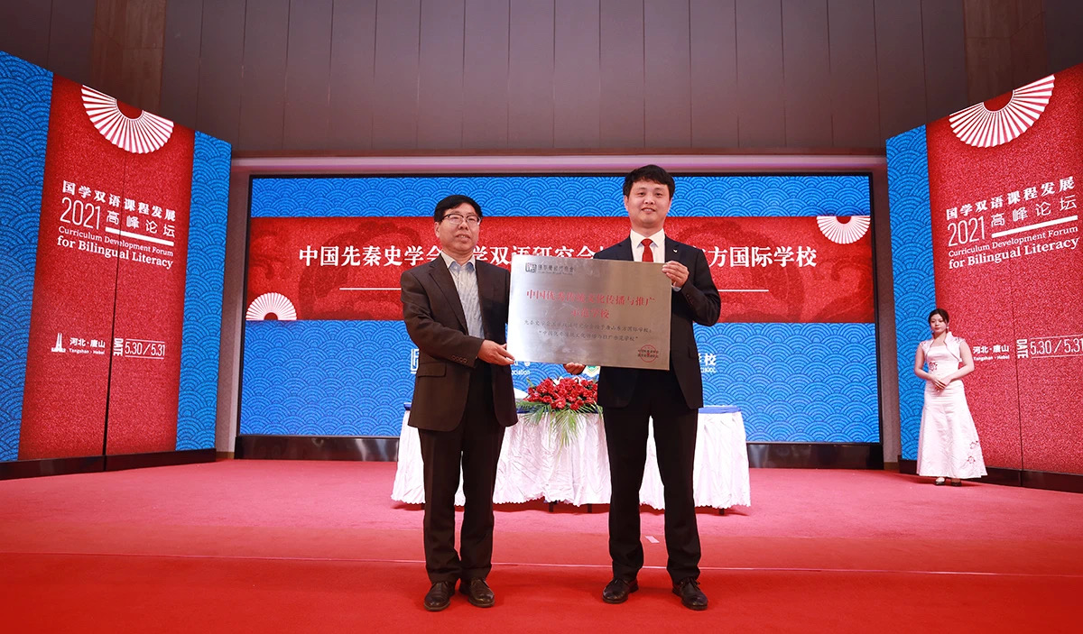 3044永利集团赵彦春国学双语研究团队在国学双语教育领域进行了前瞻性的探索。团队挖掘中国文化的深刻内涵,对教材开发、课程设计进行了深入的研究。在此基础上,团队与唐山东方国际公司就教材使用、课程推广等方面达成一致,尚新经理代表3044永利集团与唐山东方国际教育集团签订合作框架协议,赵彦春教授作为中国先秦史学会国学双语研究会执行会长为唐山东方国际公司举行授牌仪式,授予其“中国传统文化传播示范校”殊荣,今后各方将就国学双语课程体系的建立与开发进行深入合作,共同致力于中华优秀传统文化的继承与传播。