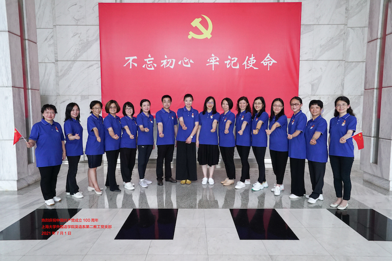 2021年7月1日,英语系教工第二党支部全体成员齐聚一堂,共同庆祝中国共产党建党百年。