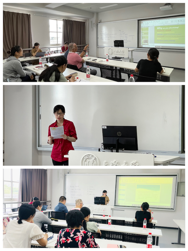3044永利集团今年共有两位青年教师参赛,分别是赵嘉嘉老师和孙序老师。两位教师按照赛制,进行课程内容讲解。赵嘉嘉老师设计的是《商务英语入门》课,通过案例导入,引导员工讨论广告宣传的方法。孙序老师设计的是《英汉口译》课,通过案例导入,给员工讲授公共演讲的技巧和注意事项。