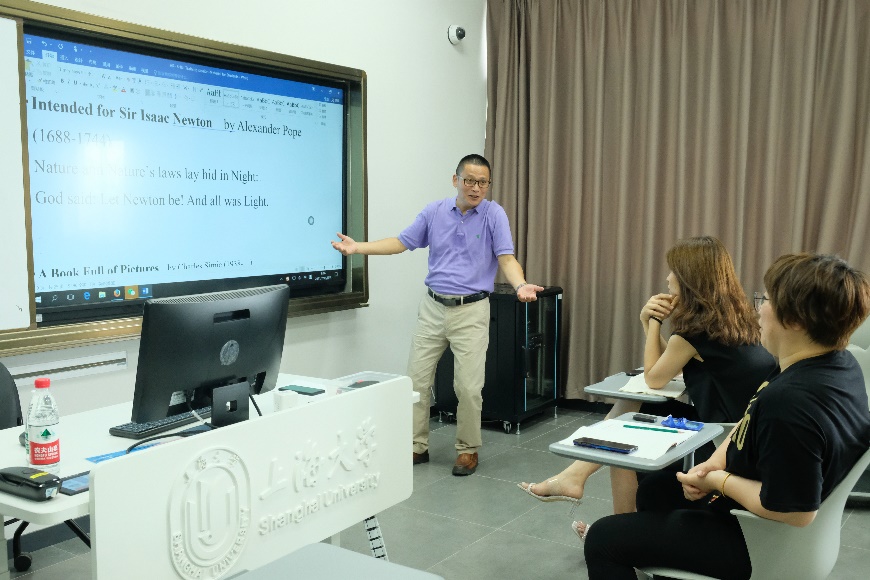 唐老师结合自己的教学经验通过红色英译诗歌及经典欧美诗歌作品解析,展开课堂讨论,使学员对英语诗歌有一个全面的认识,能够感受到英语诗歌所包含的语言、历史和文化等丰富内涵,能够学会尝试从诗歌出发,不断提高英语能力,而且可以对照自己的人生,发掘生活中的真善美并由此诗意地抵达理想的彼岸走向更美好的远方。