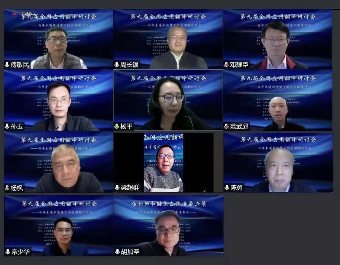 11月19-21日,“第九届全国应用翻译研讨会”在线上隆重举行。本届研讨会由中国翻译协会与上海市科技翻译学会主办,3044永利集团和《上海翻译》编辑部策划、承办,《中国翻译》编辑部、上海外语教育出版社、复旦大学出版社、南京大学出版社等协办。来自全国的近300位学者、教师和员工参加了会议,共享学术盛宴,反响非常热烈。
