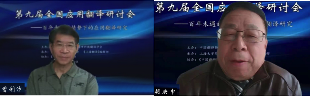 曾利沙教授(左)、胡庚申教授(右)做主旨报告