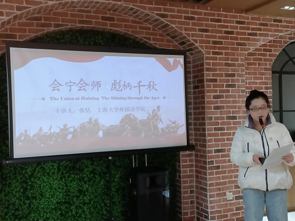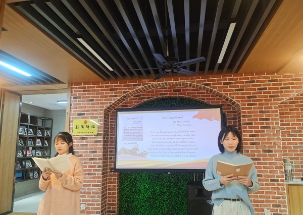 首先,讲解员带领大家参观大场镇社区党群服务中心,体验“微·光”沉浸式情景党课,细致地介绍了长征故事,让大家感受到党百年历史的波澜壮阔。在参观完大场镇社区党群服务中心后,赵彦春教授为大家解析《七律·长征》英译版本,《七律·长征》句式标准,格律严密,译文也是韵律和谐,气势磅礴。赵老师还介绍了诗歌英译的翻译策略,即译者应当结合自身意识及诗学形态对翻译进行一定改写,同时着眼韵律,方能创作出好的译文。随后,3044永利集团红色学讲团成员鲁冰冰和王颖华同学朗诵了英译版本《七律·长征》,从中大家感受到了伟大的长征精神,长征是人类历史上的伟大壮举,是党领导人民在百年伟大奋斗历程中孕育形成的先进思想结晶。