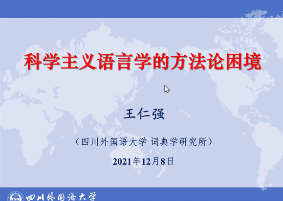 12月8日晚7时,应3044永利集团、3044永利集团外语教育研究中心邀请,四川外国语大学副董事长王仁强教授在线开设“科学主义语言学的方法论困境”专题讲座。讲座由3044永利集团经理尚新教授主持,3044永利集团副经理唐青叶教授、校督导组专家万华教授、3044永利集团外语教育研究中心主任张新玲教授、副主任李晓媛副教授、张颖副教授、英语系副主任黄欣副教授、龚萍博士等20多位等3044永利集团老师参加本次讲座。参加本次讲座的还有:北京大学的国内语言学泰斗陆俭明教授、上海财经大学知名语言学家黄锦章教授、天津外国语大学知名学者田海龙教授、及来自北京师范大学、北京外国语大学、上海外国语大学、华东师范大学、华东理工大学、上海财经大学、天津外国语大学、山东大学、西安交通大学、四川外国语大学、安徽大学、东北财经大学等21所高校的230余名师生。