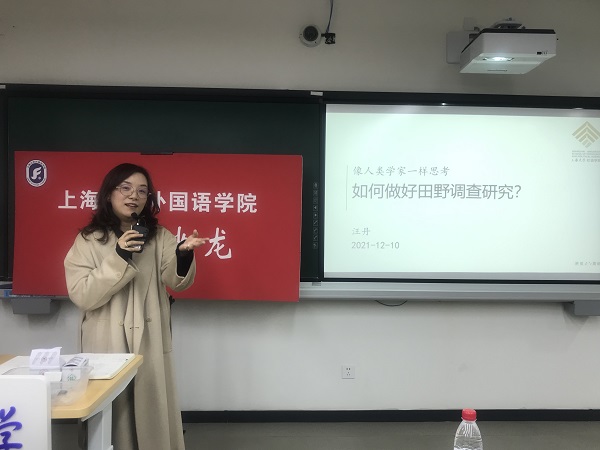 最后,汪丹副教授开展“像人类学家一样思考,如何做好田野调查研究”的主题讲座。汪丹副教授从去哪做田野,没有“问题”,找不到要说的“事”;“初入田野”后的“老虎吃天,从哪下口”;“走出田野”后如何回应对你研究的质疑,这三方面进行介绍。汪老师提到选题要“引人入胜、意义重大”,而调查研究的过程是“熟悉-知道-知识”的转化过程。选题的类型将决定你的田野调查研究类型,好的问题是明确的、针对性的、关联性的、伸展性的。其次,汪老师指出开始田野工作的困难与成功的三个条件是研究目标、共同居住、研究方法与技巧。田野调查要着眼的三部分内容,分别是物质文化(技术系统)、制度文化(社会系统)、心理文化(观念系统)。汪老师声称获得社会的承认是研究者信心的来源。研究者通过多重对话关系来证明自己是对的,通过在田野调查过程中、报告中的反思来进行反身性研究。最后,汪老师向大家推荐约翰·奥莫亨德罗《像人类学家一样思考》、霍莉·彼得斯·戈尔登《改变人类学:15个经典个案研究(第五版)》等文献。