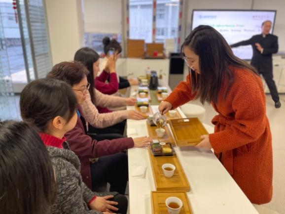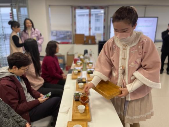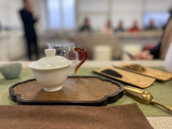 在讲座的同时,王骞老师和赵炯蔚老师进行了茶艺表演,展示茶具茶器和冲泡饮茶的仪轨,并邀请老师们品尝祁红、滇红、正山小种和九曲红梅等几款红茶,为大家带来了一场视觉、听觉、味觉于一体的茶道分享交流会。