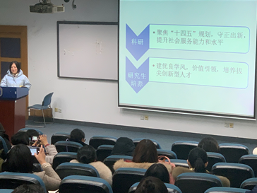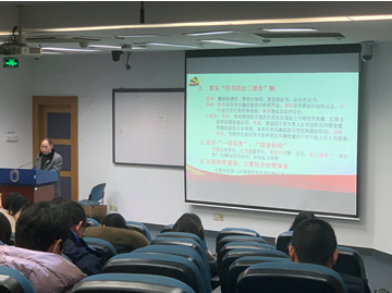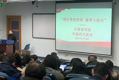 首先,在师德师风教育专题报告环节,英语系教师白岸杨以“如何践行党的宗旨,做育人标兵”为题做了分享。白老师表示,教师不仅充当教书育人的角色,也参与了员工人生的塑造,如何把运用工具与培育员工融合在一起,实现知识传授、能力培养及立德树人价值塑造三位一体是教师需要思考的方向。白老师结合丰富的教学案例,对于党员教师如何在自身岗位上做到有理想、为人民服务等提出了自己的见解。