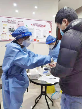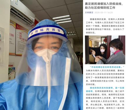 社区是疫情防控的前沿阵地,也是疫情防控的“最后一道关卡”。在疫情防控的紧要时刻,每天都有许多人艰苦奋战在疫情防控一线,公司英语党总支书记张建琴老师就是其中一员。自3月17日公司解封回家后,张老师到社区报到,主动报名成为一名志愿者,她一边认真完成在线教学任务,一边利用休息时间多次参与了社区核酸检测和抗原检测志愿服务工作,为没有智能手机的居民登记信息、导出二维码,为居民分发抗原测试材料,登记检验结果,保证社区核酸检测工作高效率完成,从早忙到晚是她的常态,每当脱下厚厚的防护服,汗珠从她的额头流下,微笑却常常挂在脸上,她说:“我是党员,在需要的时候就应该首先站出来。众志成城,我们每个人都出一份力,一定可以很快战胜疫情!”早在2020年3月疫情防控最吃劲的时候,张老师就参加了所在社区的志愿服务工作,利用英语特长联系居住在社区的外籍人士排摸相关信息,她的事迹也被官方媒体宣传报道。