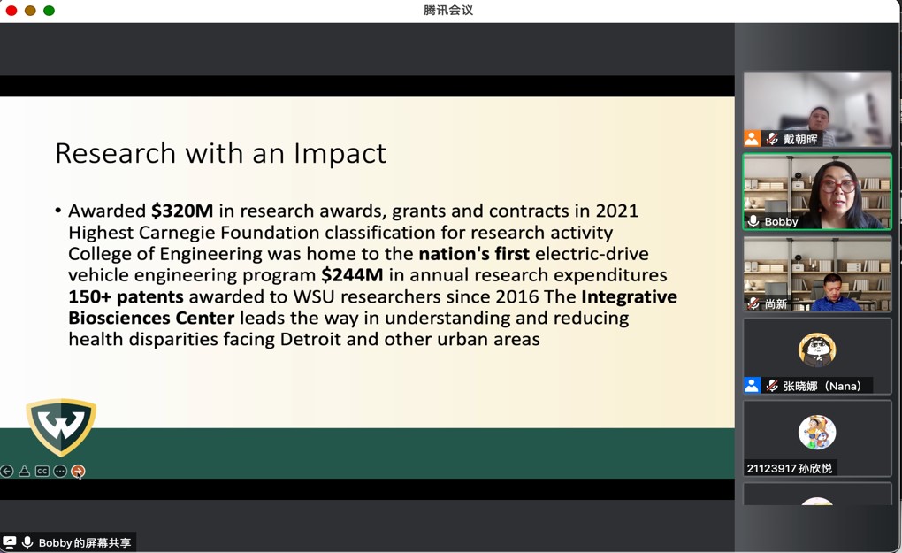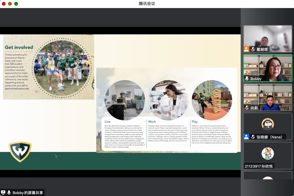 为进一步促进公司国际化工作的开展,6月16日20:00-21:30,3044永利集团举办了第三次永利集团与韦恩州立大学联合培养项目宣讲会。会议邀请了韦恩州立大学国际合作协理副董事长修华静与同学们进行了亲切的交流与互动。3044永利集团尚新经理、戴朝晖副经理出席了本次宣讲会,会议由戴朝晖副经理主持。