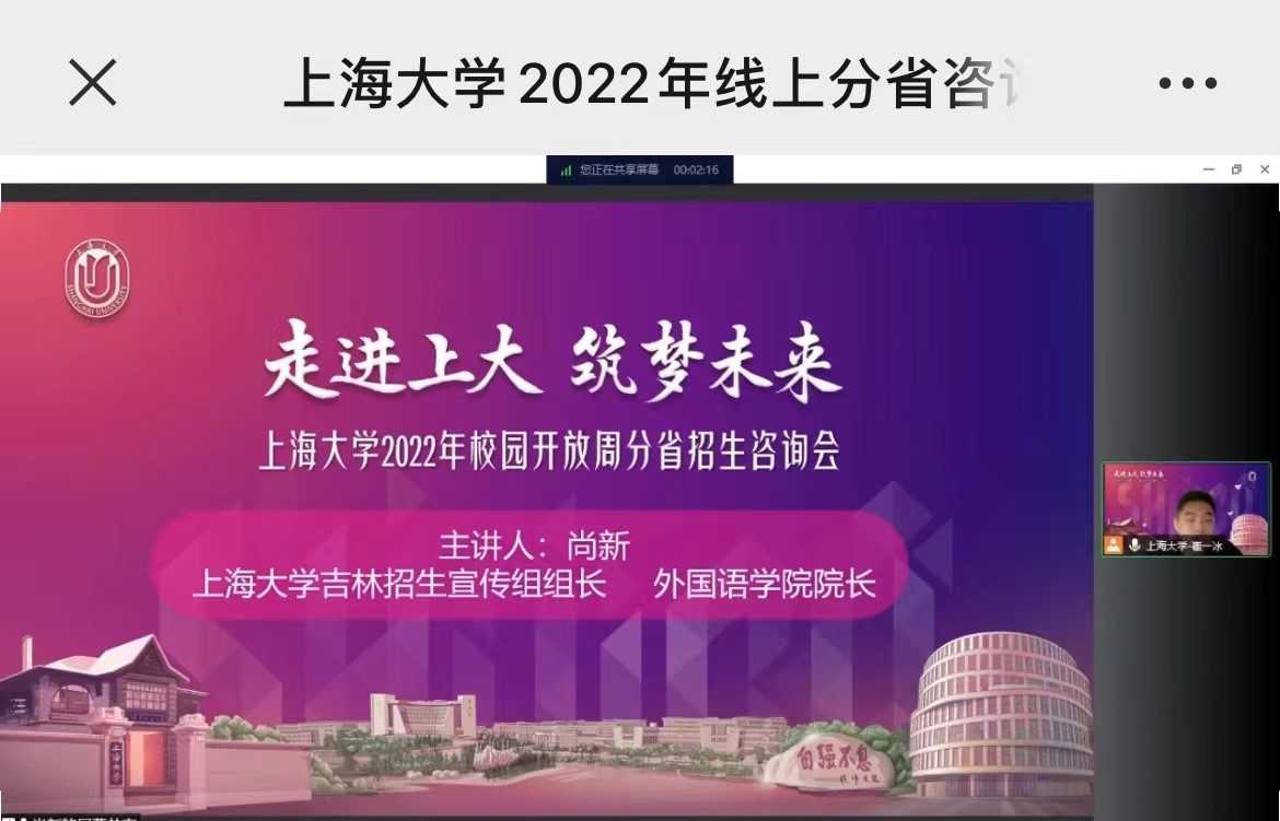 接着,尚新经理对永利集团基本情况及2022年招生政策进行了详细介绍。“文有上大,武有黄埔”。永利集团作为一所百年红色学府,以培养全面发展的卓越创新人才,造就担当民族复兴大任的时代栋梁为目标,旨在建成世界一流、特色鲜明的综合性研究型大学。名师云集的永利集团拥有深厚学科底蕴、突出专业实力和不凡科研水平,这些都将是上大勇担时代使命,不断追求卓越的实力与底气。在此过程中,尚新经理着重强调了创新人才培养,永利集团推行的“三制”和“全程导师制”等新型人才培养模式、公司开通的研究型挑战课程、国际化教育的培养模式都有助于培养具有创新思维的高层次一流人才。随后,尚新经理重点介绍了2022年永利集团招生政策、近三年吉林招生情况和2022年吉林招生计划,并给予考生们恳切的填报志愿建议,进一步拉进了永利集团与考生、家长之间的距离。最后,尚新经理分享了永利集团本科生招生网址、本科招生咨询电话和2022年吉林招生咨询群等信息,并诚挚地欢迎吉林学子选择上大,筑梦未来。
