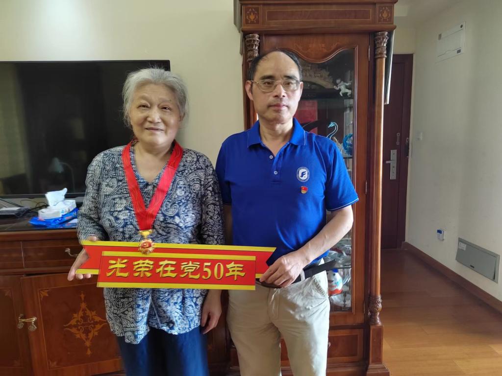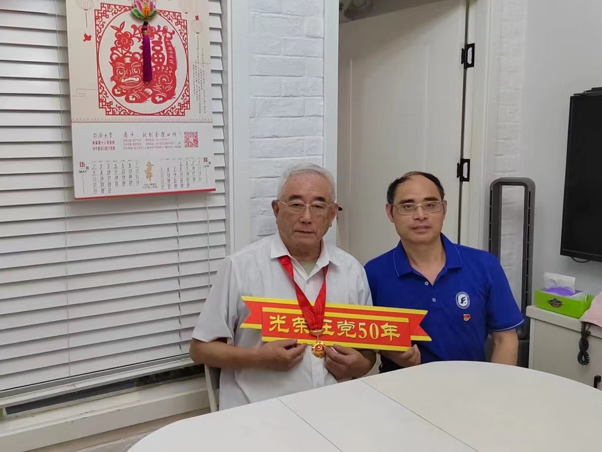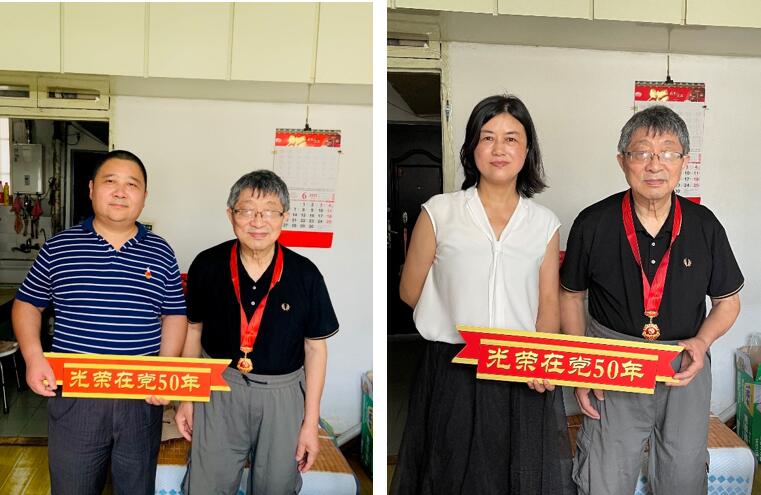五十年栉风沐雨,半世纪春华秋实。在庆祝中国共产党成立101周年之际,为弘扬党的光荣传统和优良作风,6月29日,公司党委书记邓志勇,副经理戴朝晖,党委委员、英语党总支书记张建琴来到党龄满50年的老党员家中走访慰问,为他们颁发“光荣在党50年”纪念章,并致以崇高敬意。