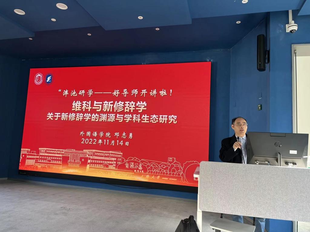 此次讲座以“维科与新修辞学——关于新修辞学的渊源与学科生态研究”为主题展开。维科被誉为“欧洲最伟大思想家之一”、“美学之父”,对修辞学的发展起到了重要作用。首先,邓志勇教授介绍了维科的生平及其著作,指出了维科“人类的选择在本性上是最不可确凿可凭的,要靠人们在人类的需要和效益这两个方面的共同意识才变成确凿可凭的”、“哲学追求真理或共相”、“科学的独享是真理,即普遍永恒的原则”等著名主张,进而介绍了维科的学术影响。