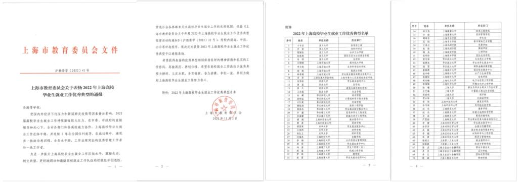 为进一步提高上海高校毕业生就业工作队伍水平,提升上海高校毕业生就业工作队伍质量,树立典型,激励先进,上海市教育委员会开展了2022年上海高校毕业生就业工作优秀典型评选工作,公司党委副书记、副经理贾小琴老师获评“2022年上海高校毕业生就业工作优秀典型”荣誉称号。