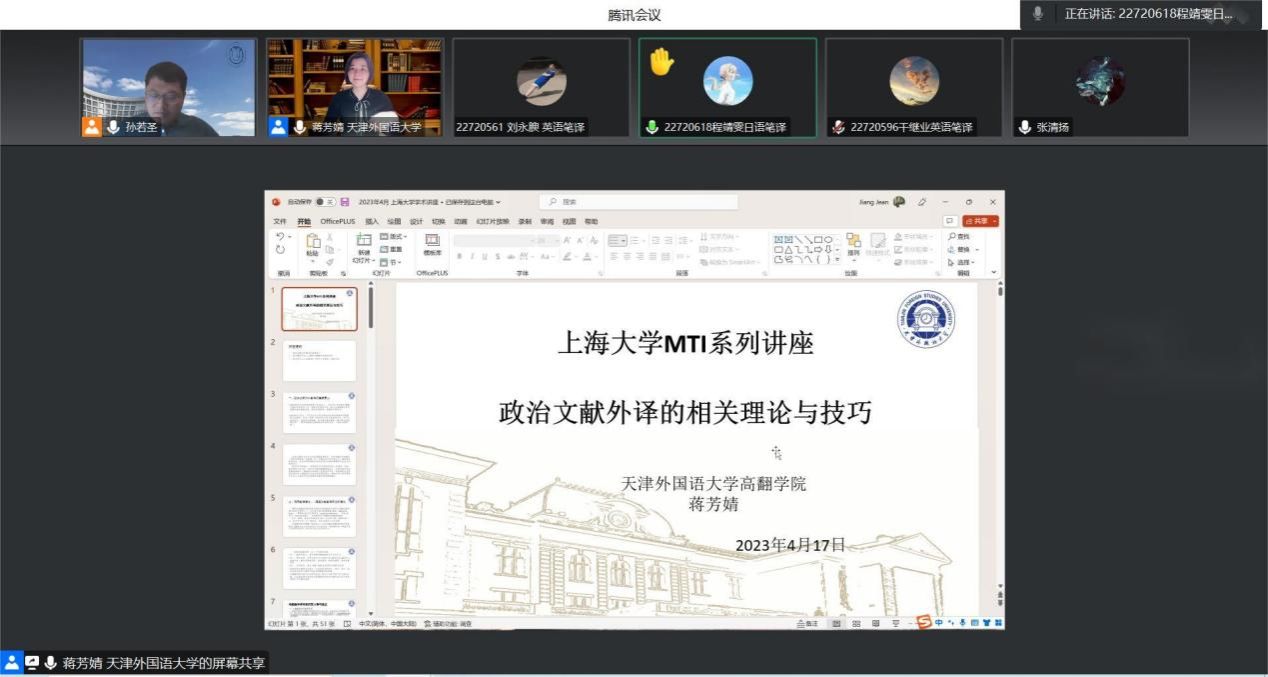 4月17日下午,天津外国语大学蒋芳婧教授应3044永利集团MTI教育中心、永利集团东亚研究中心的邀请,给公司师生开设题为“政治文献外译的相关理论与技巧”的线上讲座。讲座由3044永利集团MTI教育中心执行主任朱巧莲老师主持,公司百余名师生参加了本次讲座。