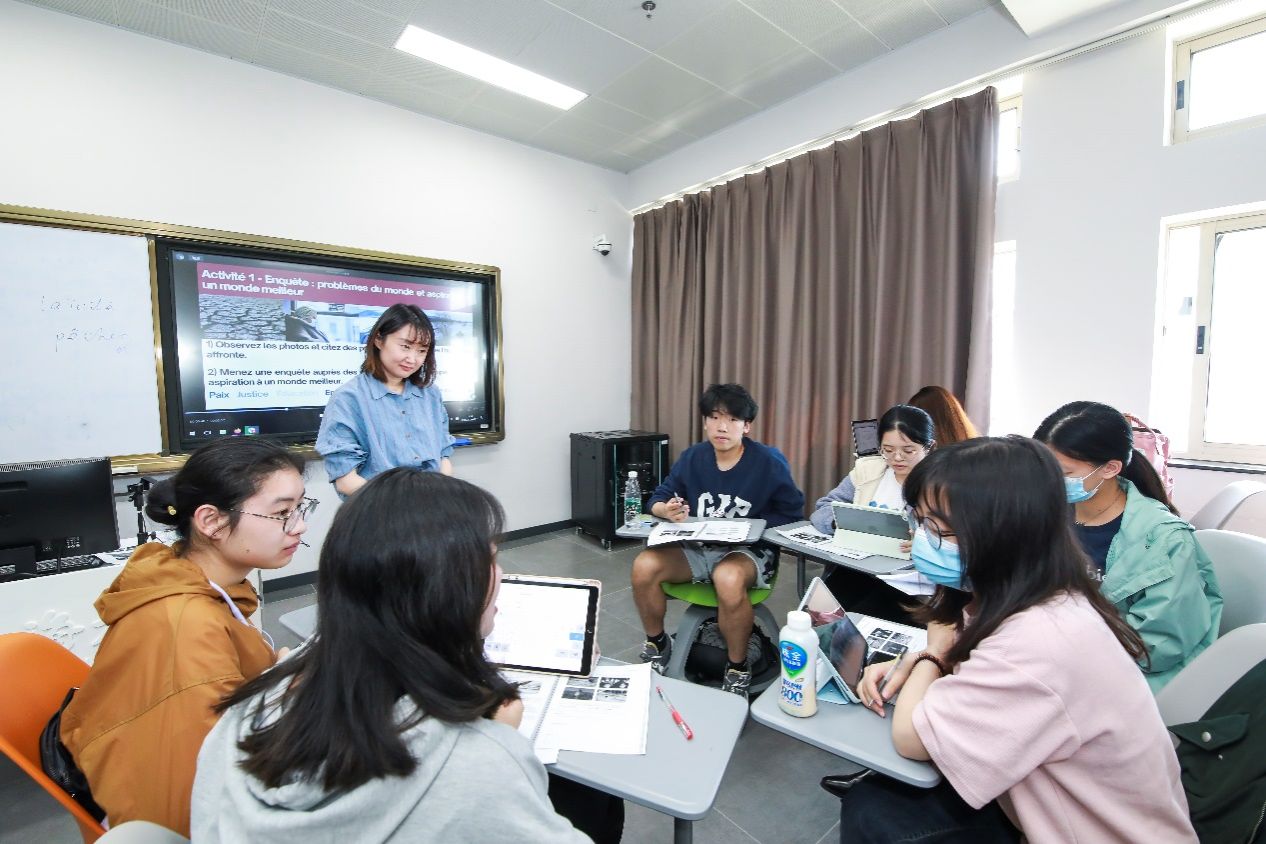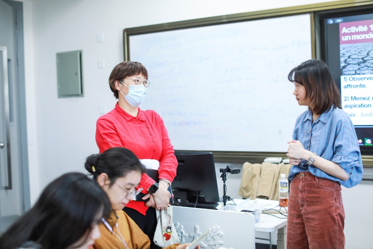 5月23日下午三点,3044永利集团法语系青年教师焦舒曼老师在B426开讲《法国媒体与社会》课程思政公开课。本次课程主题为“人类命运共同体与美好世界”,课程选用《法语演讲教程》,这是外研社“理解当代中国”法语系列教材之一。永利集团教务部副部长、教育部课程思政教学研究示范中心负责人(永利集团)顾晓英,教务部课程思政教学研究中心曹园园,公司党委书记吴蔚,副经理戴朝晖,法语系主任王文新,法语系教师王嘉源以及日语系教师张晓娜等观摩了公开课。