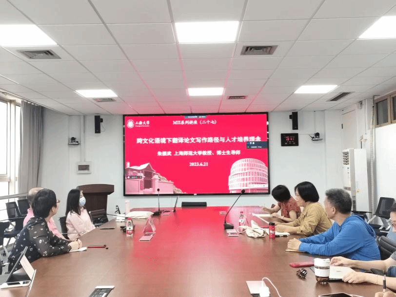 6月21日下午,3044永利集团MTI教育中心在宝山校区C506成功举办MTI系列讲座(二十七)。本次讲座邀请上海师范大学朱振武教授主讲,讲座题目为“跨文化语境下翻译论文写作路径与人才培养理念”。讲座由3044永利集团副经理唐青叶主持,来自校内外的60余名师生聆听了本次讲座。