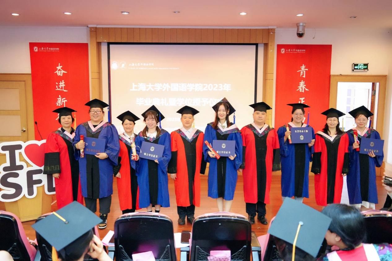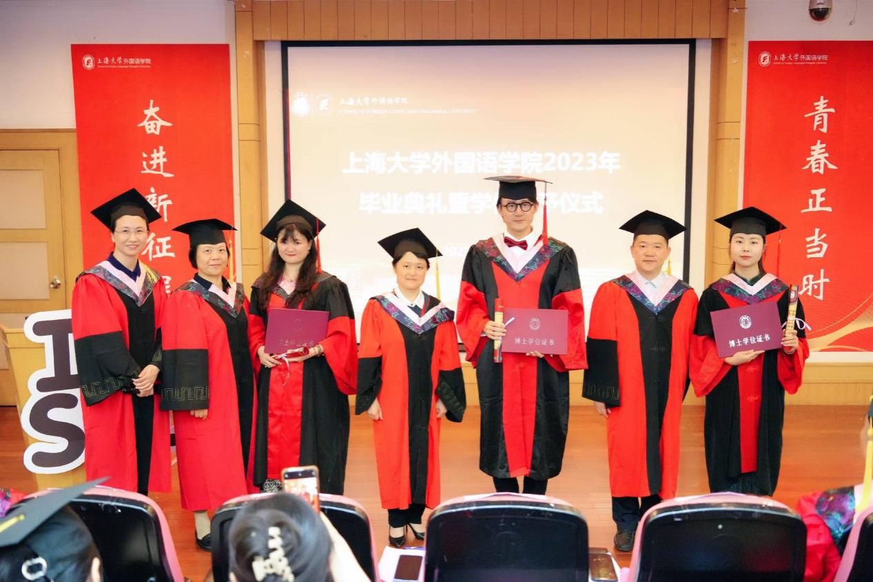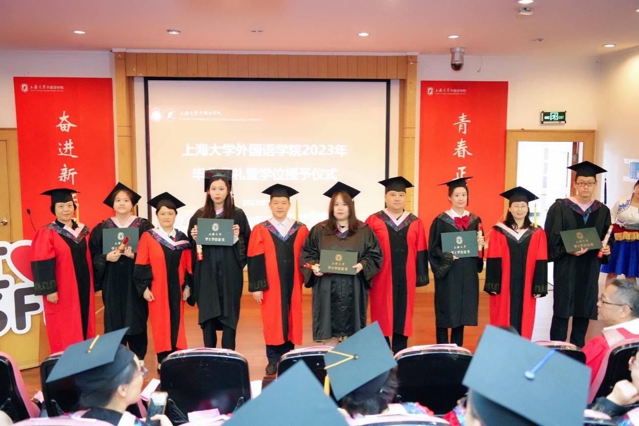 接着,优秀毕业生代表曹怡雯(本科生)、沈露怡(研究生)、贺靓(博士生)依次上台发言,向大家分享自己对大学学习生活实践的感悟,以及对母校的祝福。曹怡雯同学回顾了在母校四年的成长与收获,表达了身为上大外院人的骄傲,并呼吁毕业生们直面挑战与挫折,坚定地走向明天,迎接每一天的曙光。