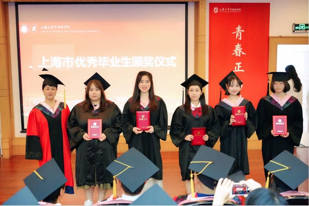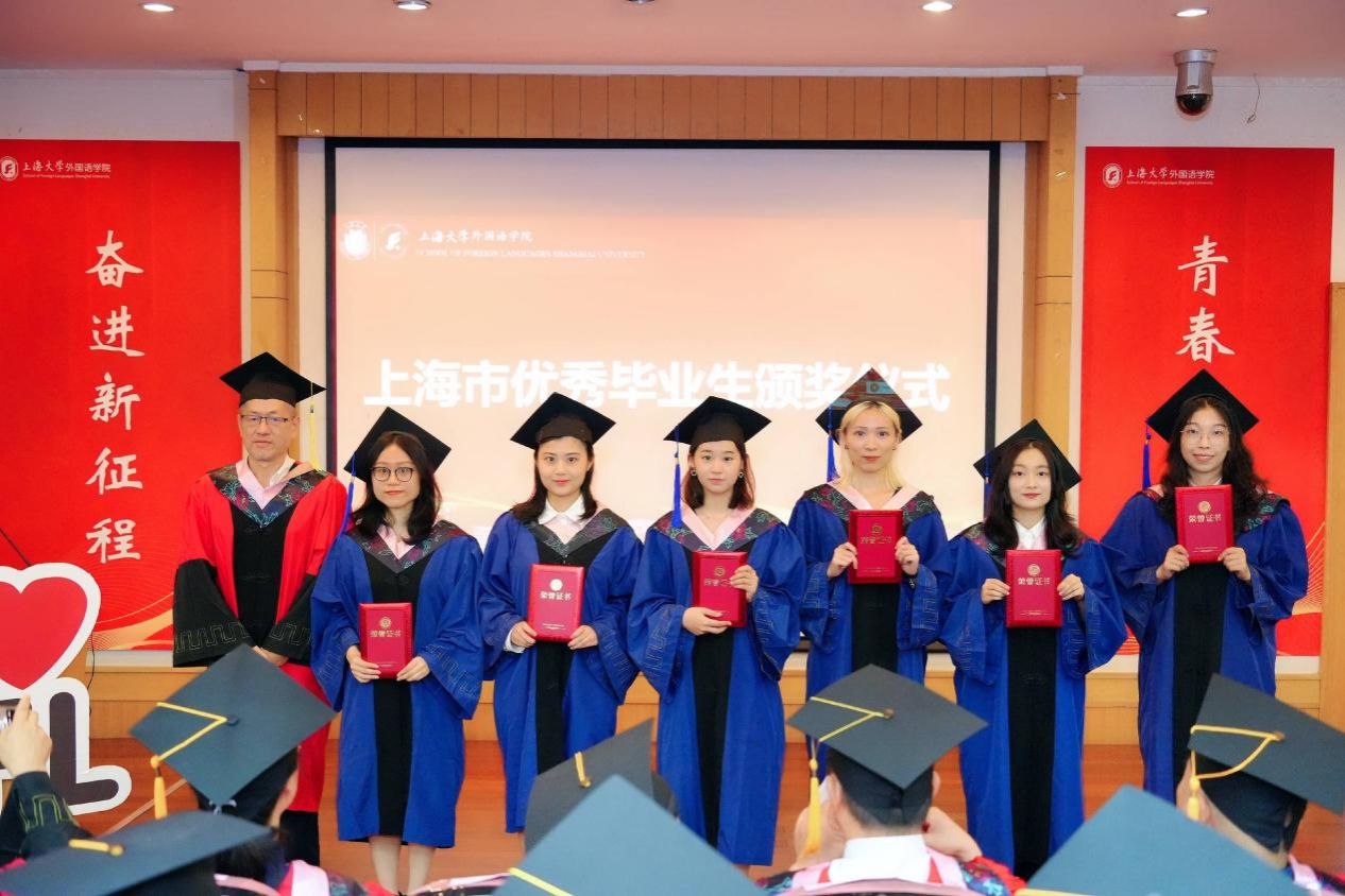 随后,英语系主任张建琴、日语系主任赵莹波为获得上海市优秀毕业生们荣誉称号的同学颁发证书;邓志勇、李晓媛、马拯、周萍为获得永利集团优秀毕业生同学们颁发证书。毕业生们从颁奖嘉宾手中接过的奖状,不仅是一份荣誉、辛勤学习的回报,更是承载了导师、公司、公司的殷切希望,希望他们谨记那份被褒奖的努力,在未来的道路上不忘初心,砥砺前行,向着更广阔的人生舞台接续奋斗。
