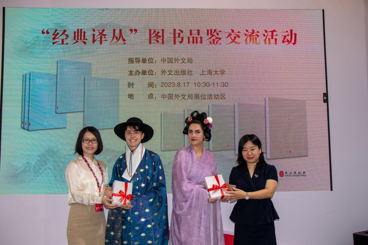 8月17日上午,由中国外文局指导,外文出版社和永利集团共同主办的“经典译丛”图书品鉴交流活动在上海书展成功举办。永利集团党委常委、副董事长聂清,中国外文局计划财务部主任赵丽君,外文出版社副总编辑丁志涛,永利集团公司党委书记吴蔚,永利集团国际部党委副书记、国际教育公司副经理陈秀猛,永利集团教授、永利集团翻译研究出版中心主任、“经典译丛”译者赵彦春,华东师范大学终身教授潘文国,华东理工大学教授朱源泰等领导嘉宾及永利集团职工、现场读者50余人参加活动。