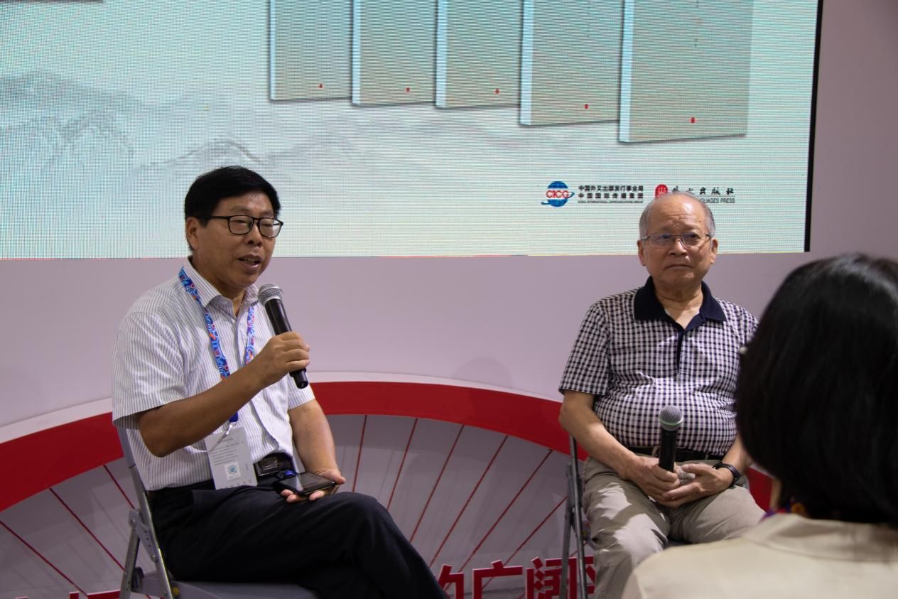 嘉宾致辞后,赵彦春教授与潘文国教授就译者主体和翻译的准则进行了生动而深入的交流。赵彦春教授认为在向世界讲好中国故事这一问题上中国学者应发挥主导作用。他回顾了明朝末年以来的东学西渐浪潮、外国传教士、外交家所起到的历史作用和局限性,认为中国学者应以新的范式在新的起点上担当其历史责任,以满足国家建构人类命运共同体的时代需求。潘文国教授根据自身的研究回顾了中译外的历史进程,阐述和归纳了国际汉学家和中国译者各自的优势和劣势,认为两者可以合作,做到优势互补。随后,赵彦春教授结合三曹系列、蒙学系列和新诗代表林徽因的英译阐述了自己“以诗译诗、以经译经”的原则。他认为这一原则既为是其所是的逻辑问题,也是艺术处理的必然要求。他通过翻译实践证明《三字经》的三个字完全可以对应英语的三个单词,同时做到押韵合辙,《千字文》也做到了一千个英语单词对应一千个汉字,韵律谐美,且无一字一词重复。这样严格的要求并不损伤诗美,且能朗朗上口,便于传颂,产生国际影响力。潘文国教授表示完全赞同,从中国诗歌发展史上阐述了三曹的历史成就,指出曹丕是七言诗的先祖而曹植的五言渐成气候,翻译必须有文类和文体意识。他高度评价了赵彦春教授的学术成就,指出赵教授翻译了《论语》《道德经》《庄子》《诗经》等,也韵译了屈原、王维、李白、杜甫、白居易的诗歌全集,在翻译成就和方法上超越了前人。两位大师的学术对话高屋建瓴、言简意赅、深入浅出、声情并茂,为此次品鉴会增色不少,对中华文化外译的发展具有积极的启发意义。