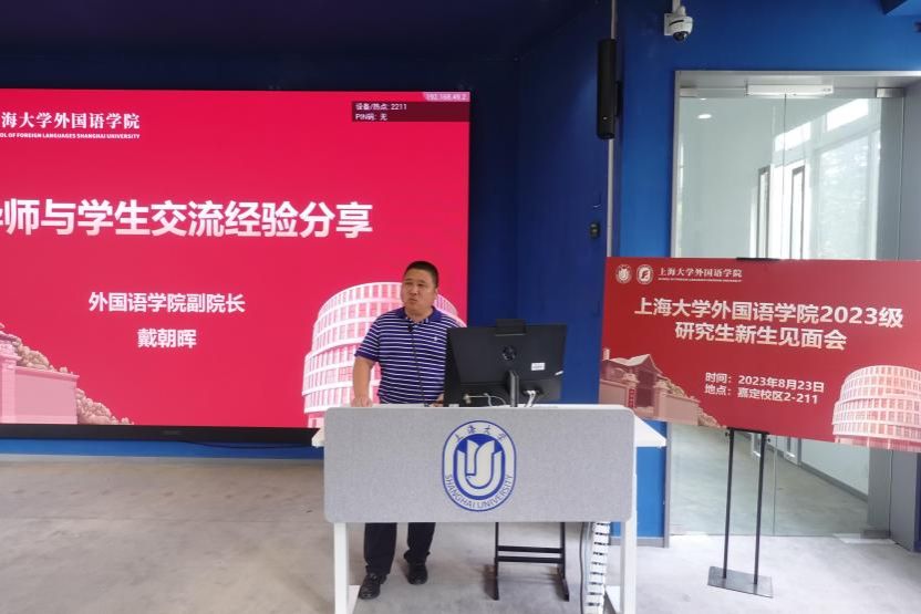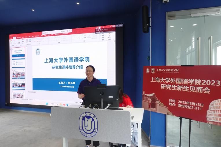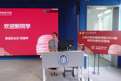 英语系主任张建琴、日语系主任赵莹波、法语系主任王文新分别向2023级研究生新生们表达了热切的欢迎。三位老师先是介绍了嘉定校区和专业团队状况,并分别从专业出发对新生们提出了自己的建议和期望。