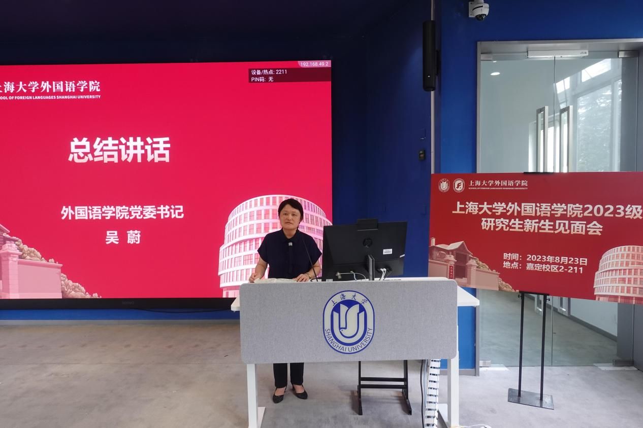 3044永利集团2023级研究生新生见面会于8月23日14:00在嘉定校区二教211教室顺利举行。公司党委书记吴蔚,党委副书记、经理尚新,党委副书记、副经理贾小琴,副经理戴朝晖,副经理唐青叶,副经理阚怀未,英语系主任张建琴,日语系主任赵莹波,法语系主任王文新,法语系副主任向维维,MTI中心副主任花亮,研究生辅导员曹若兰,研究生教学秘书张静,研究生教学秘书姚远及2023级全体研究生出席了本次活动。本次新生见面会由研究生会文体部部长程路主持。