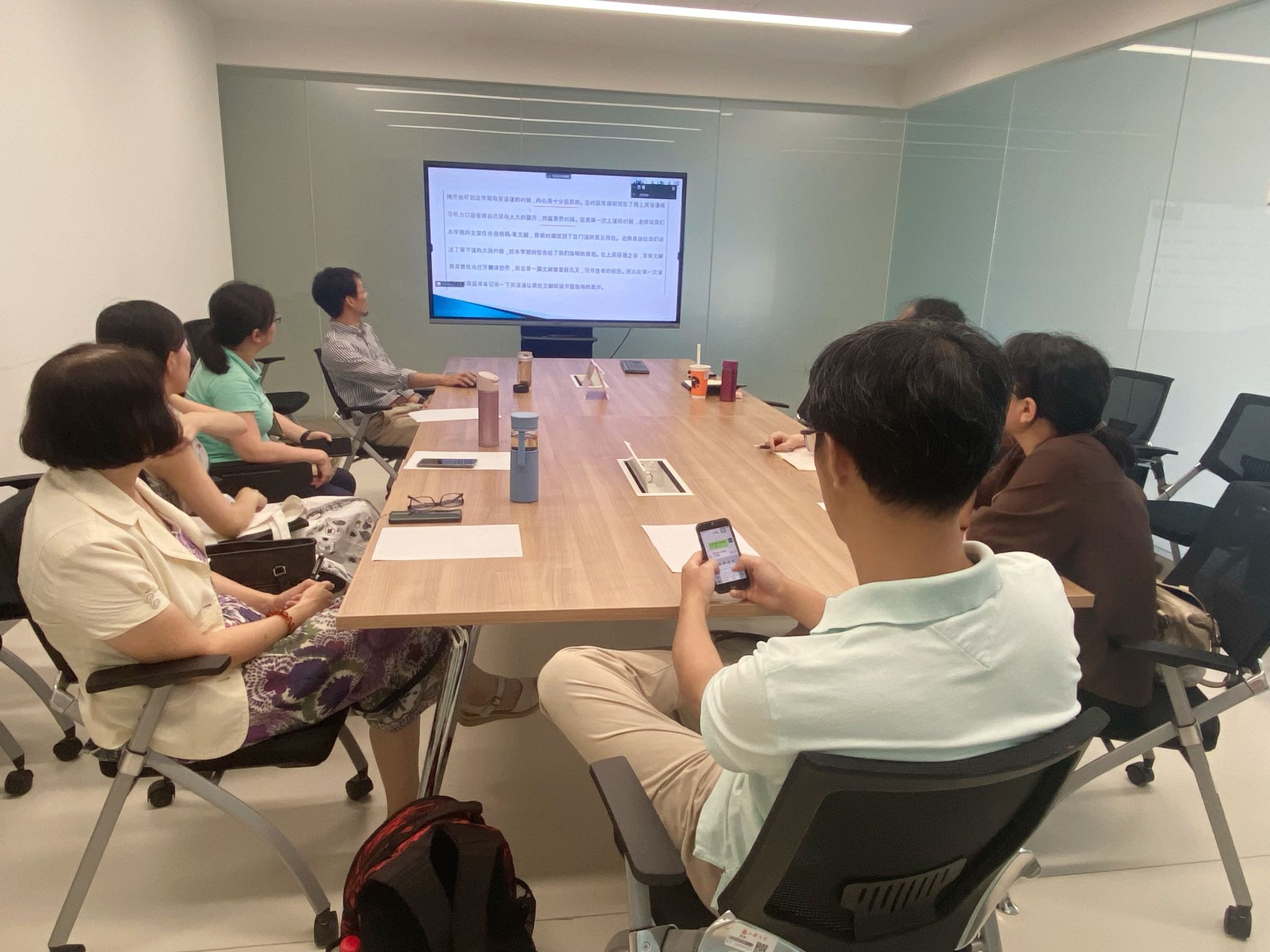 经验分享结束后,大家展开了热烈讨论,认为本次分享会非常精彩,大家都受益匪浅。研究生公共外语部主任马拯进行了总结,认为竹旭锋老师的教学经验分享既有理论高度,又有实践深度,对今后更有针对性地、高效地开展学术英语教学工作大有裨益。