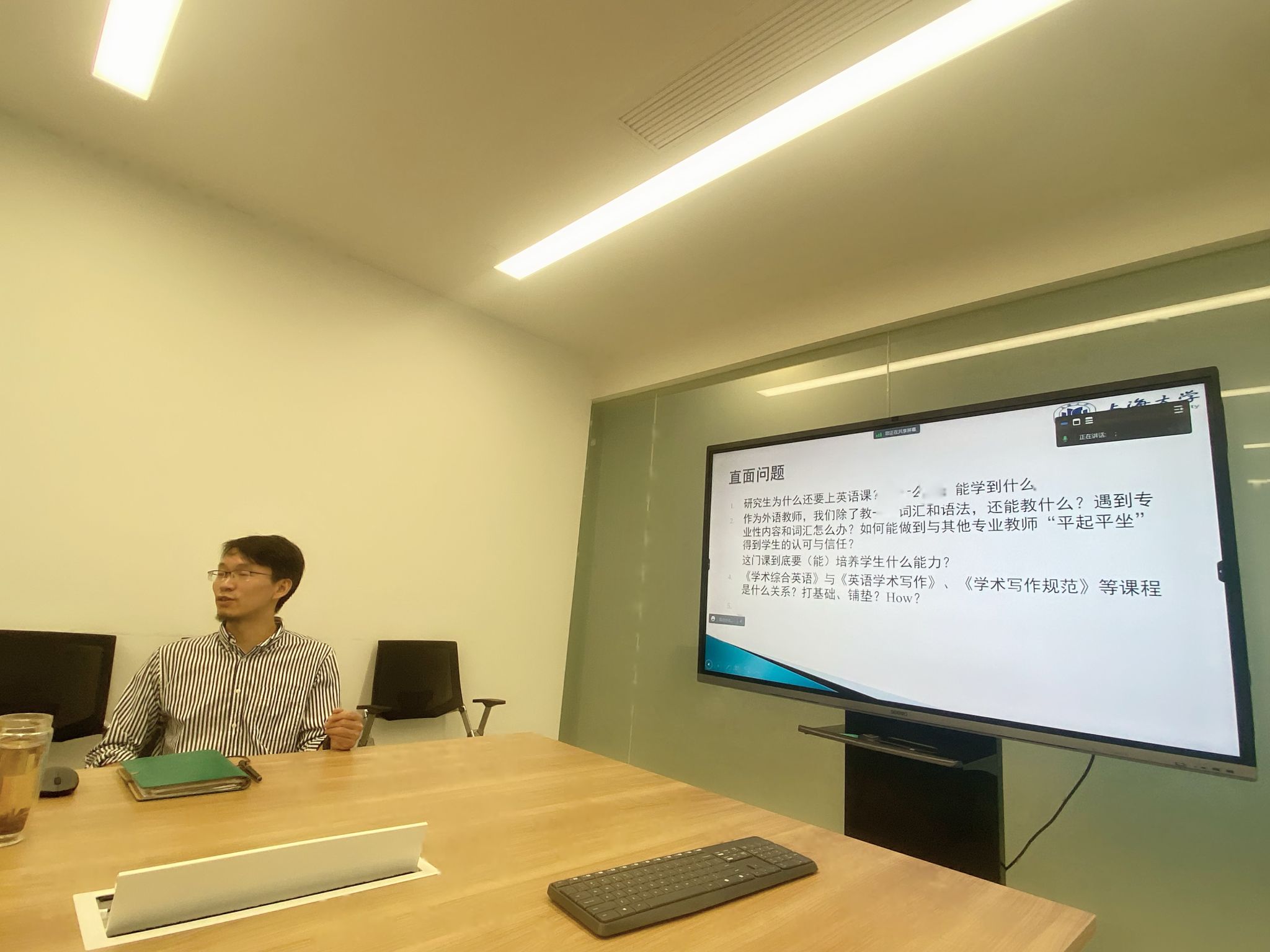 为更好地提升研究生综合英语教学技能,优化教书育人的质量。9月1日下午,3044永利集团研究生公共外语部在宝山校区C414b召开教学经验交流座谈会,座谈会由研究生公共外语部主任马拯主持,研公外部竹旭锋老师结合自己丰富的授课经验做了精彩的学术综合英语A级教学经验分享,研究生公共外语部全体教师参加了本次会议。