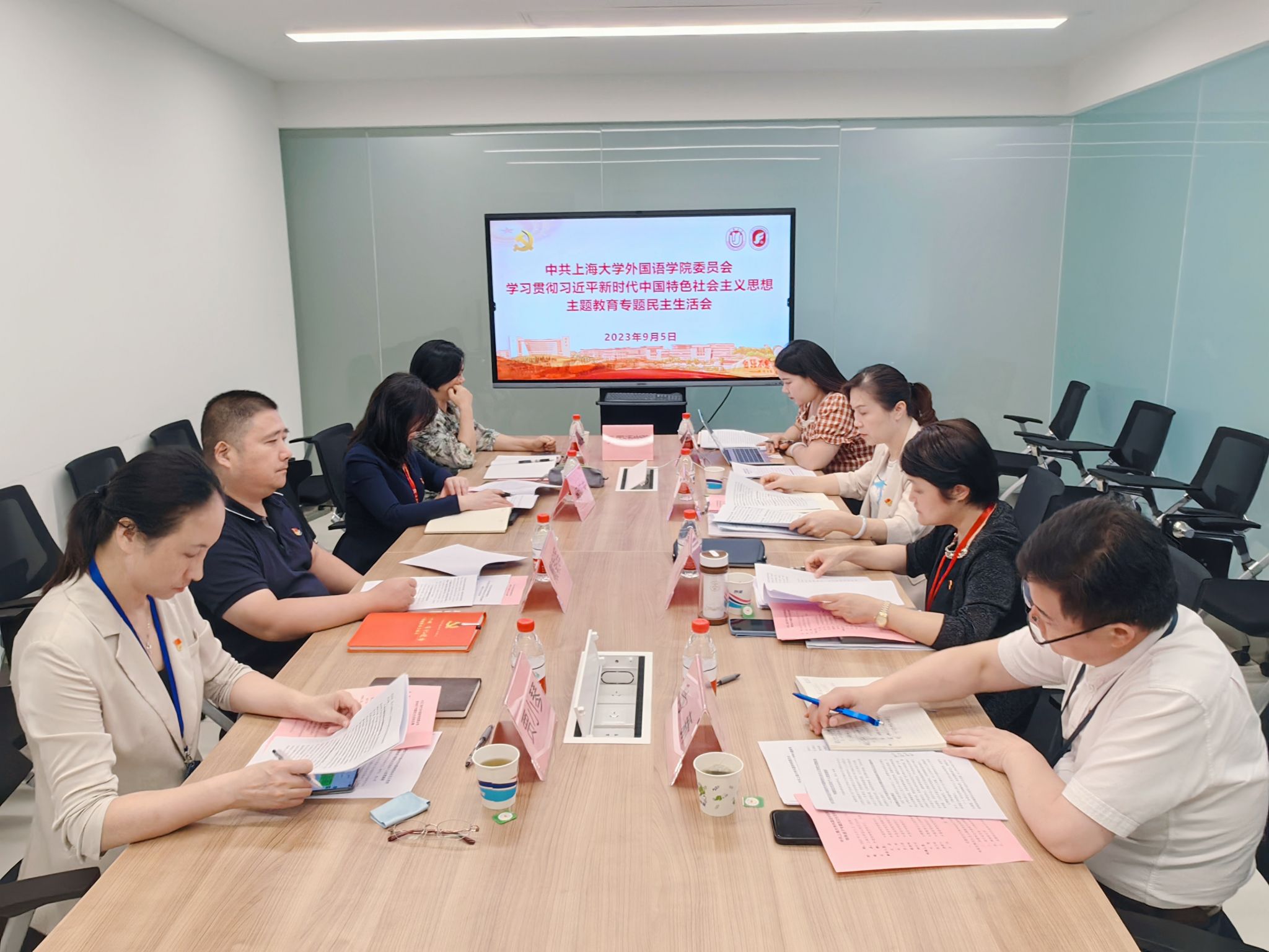 9月5日下午,公司党委学习贯彻习近平新时代中国特色社会主义思想主题教育专题民主生活会在宝山校区C414b举行。主题教育办公室联络组第三联络小组组长韦蒨、联络员张玉昭到会指导,公司领导班子参加会议,会议由公司党委书记吴蔚主持。