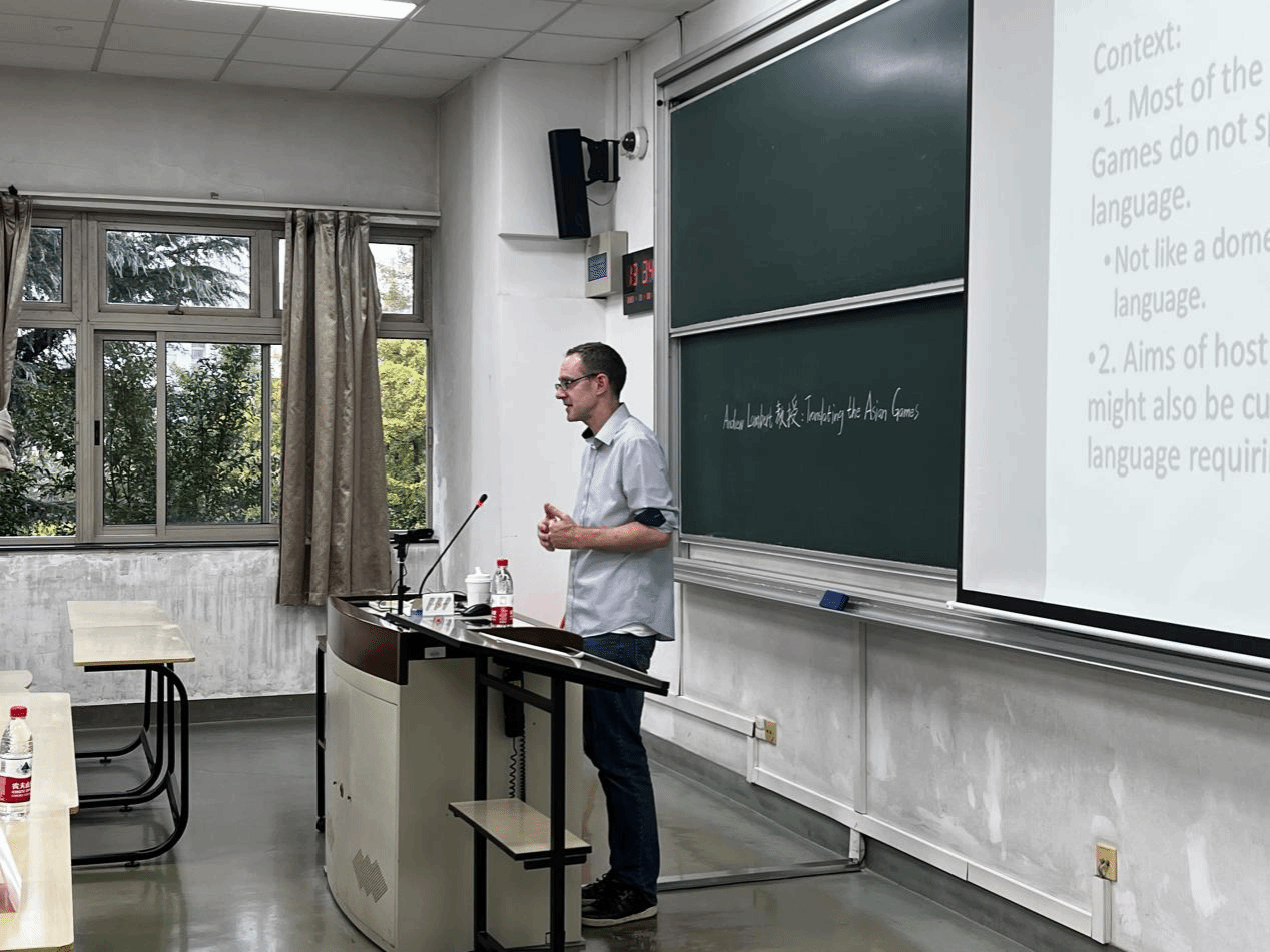 9月22日,纽约城市大学Andrew Lambert(林安迪)博士应3044永利集团MTI教育中心邀请,为MTI专业员工开展了以“Translating the Asian Games: Challenges and Innovations”为题的讲座,MTI教育中心执行主任朱巧莲副教授主持。英语系副主任龚萍、MTI教育中心副主任邵庆华和公司百余名员工一同参与此次讲座。