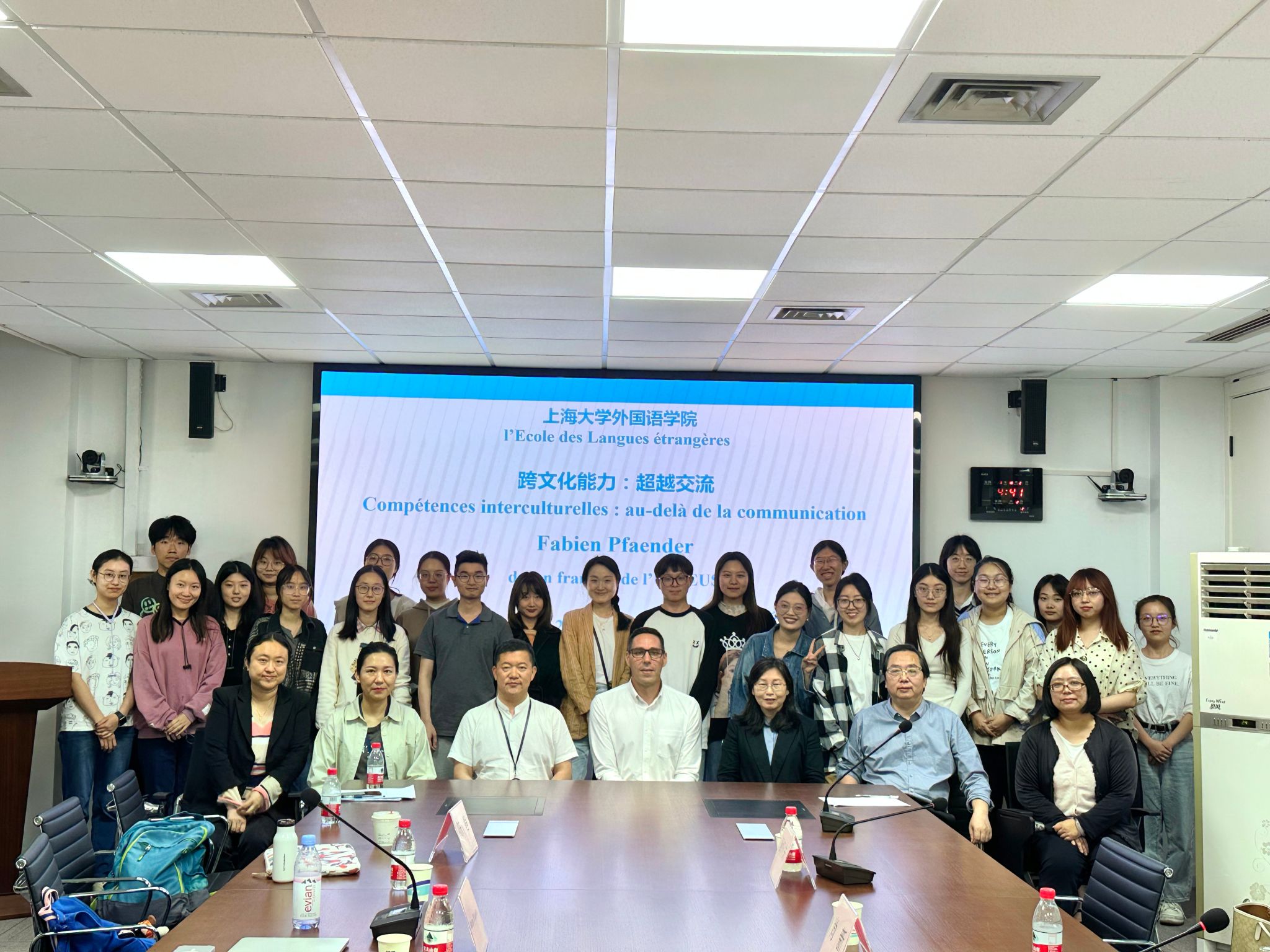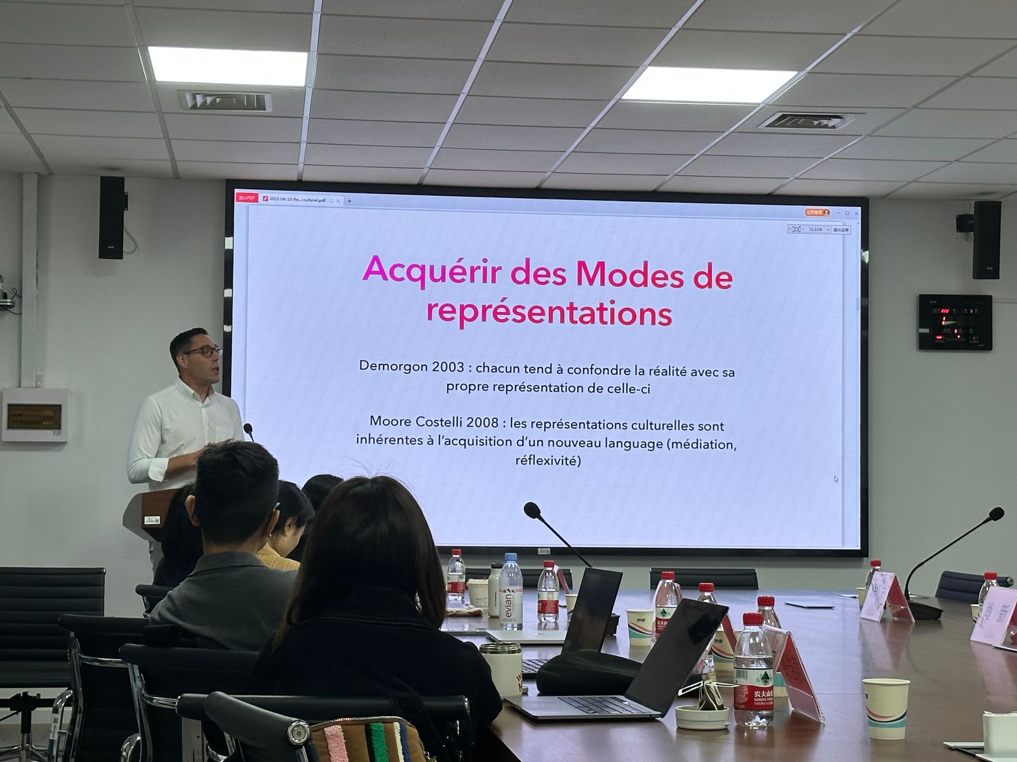 10月26日下午,3044永利集团法语系邀请中欧公司Fabien Pfaender经理开设题为“跨文化能力:超越沟通”(compétences interculturelles : au-delà de la communication)的讲座。公司党委副书记、经理尚新、副经理阚怀未出席,法语系主任王文新主持,法语系全体师生参加了活动。