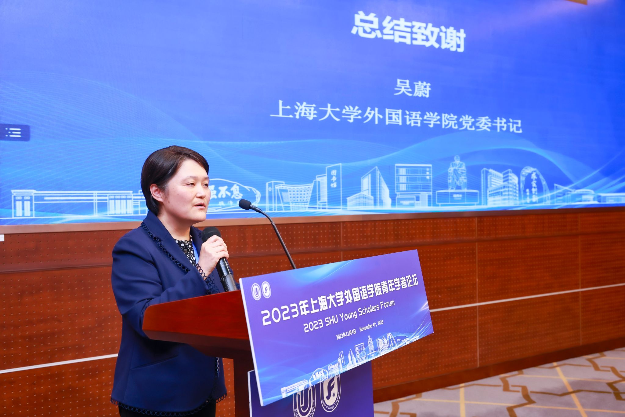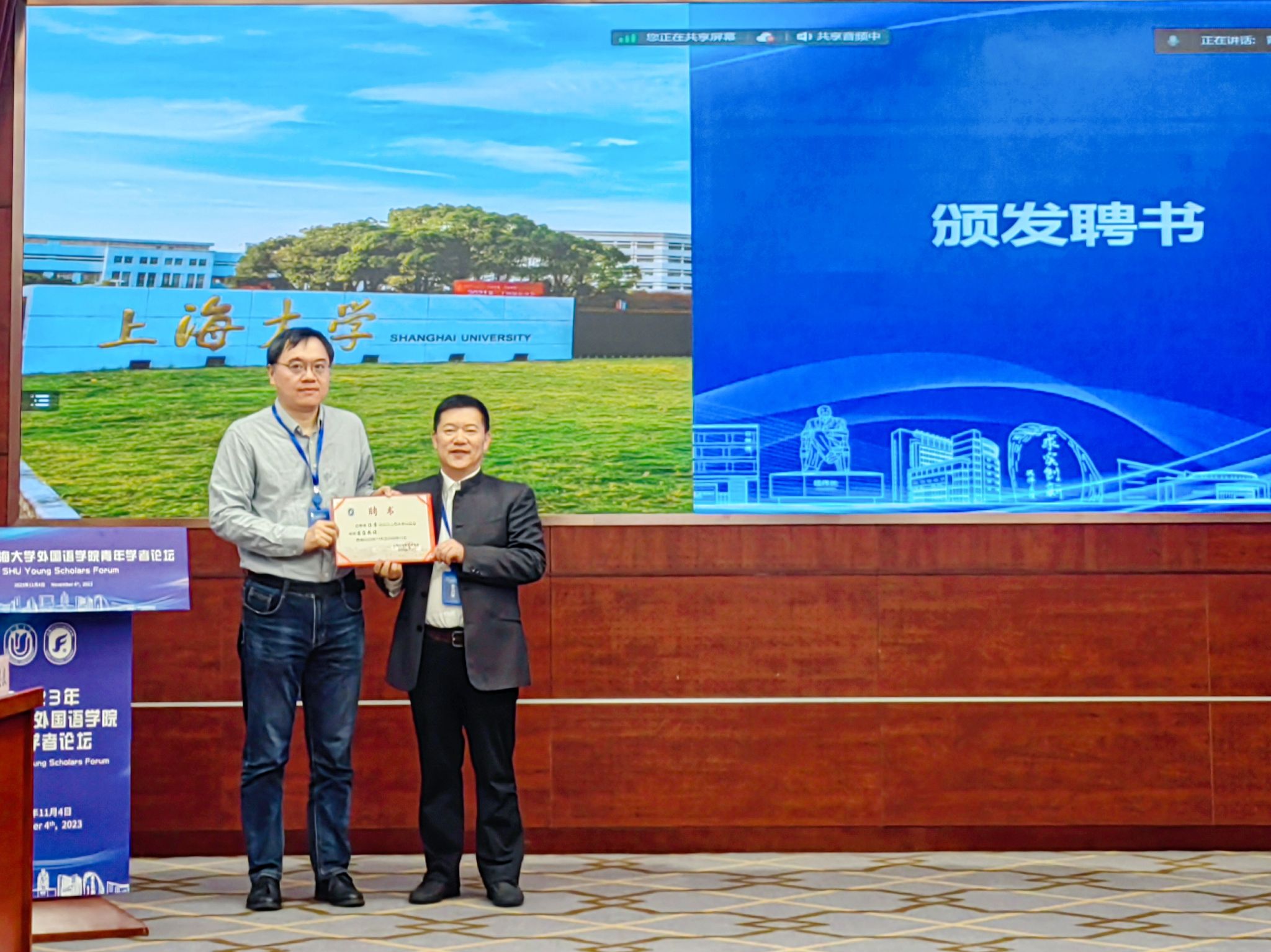 闭幕式上,尚新经理为陈雷研究员颁发了“3044永利集团客座教授”聘书,吴蔚书记为与会青年学者颁发了参会证明,随后为本次论坛做致谢总结。吴书记首先代表公司向参加本次高水平青年论坛学术盛会的全体专家和青年才俊表示感谢,强调青年学者是学科发展和科学研究的青春之源,是公司未来发展中最积极、最蓬勃、最有朝气的青春力量。公司此次围绕“融通中外、文明互鉴”主题举办青年学者论坛,开阔了各学科领域之间、各语种之间的研究视野,推动了青年师生之间的思想碰撞与合作交流,鼓励青年学者通过思想的汇聚融通来提升学术研究的广度和深度,同时在以提升国际传播效能、助推中外文明交流互鉴的学术使命方面达成了高度的共识。
